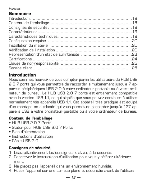 Nos sommes heures de vous compter parmi les utilisateurs du HUB USB 2.0 7 ports qui vous permettre de raccorder simultanément jusqu'à 7 apparciels péripériques USB 2.0 à votre ordinateur portable ou à votre ordinateur de bureau. Le HUB USB 2.0 7 ports est entièrement compatible avec la version USB 1.1, ce qui signifie que vous pouvez continuer à utiliser normalement您的 apparciels USB 1.1. Cet apparéil très pratique est équipe d'un montage en guirlande qui vous permet de raccorder jusqu'à 127 apparciels USB à votre ordinateur portable ou à leur ordinateur de bureau.
