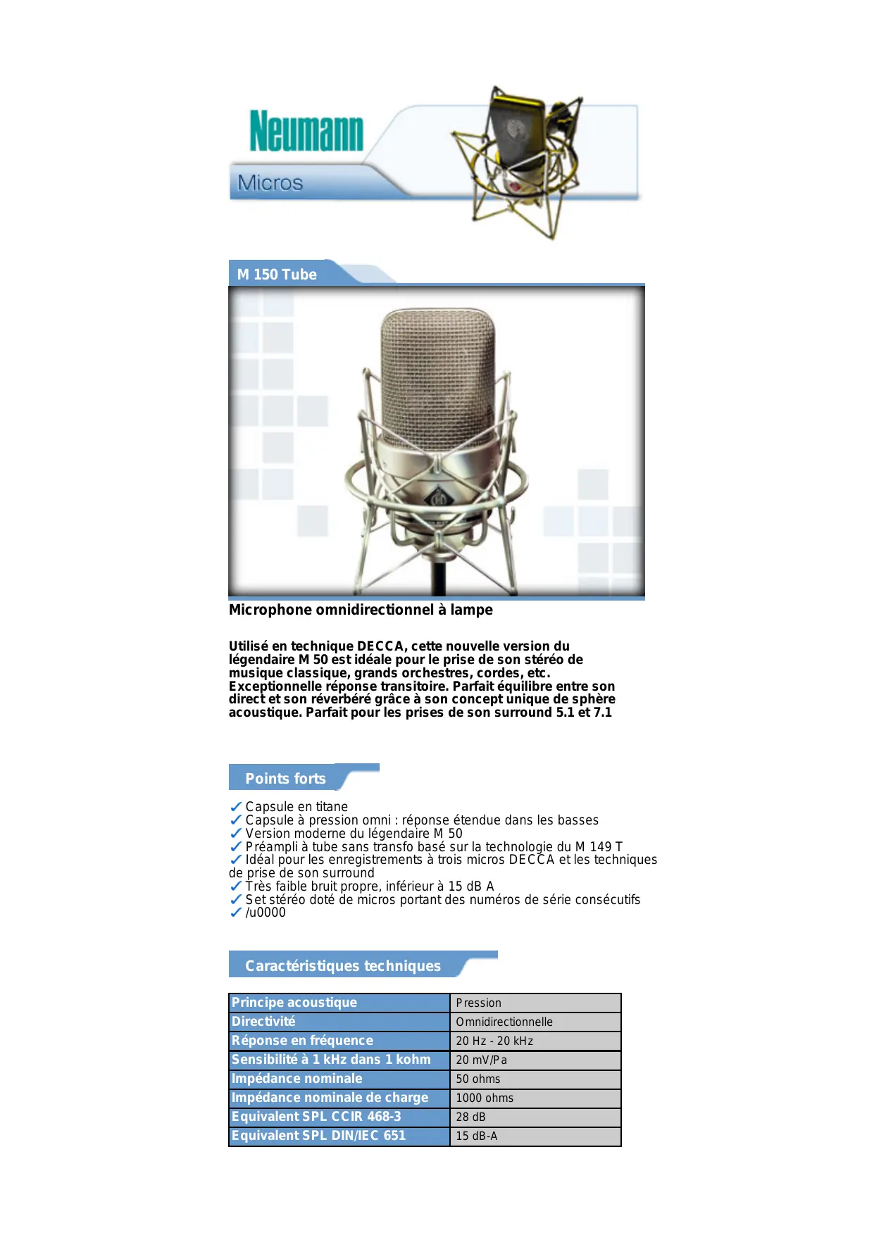 | Informations générales | Microphone haut de gamme, recommandé pour les professionnels de l'audio |