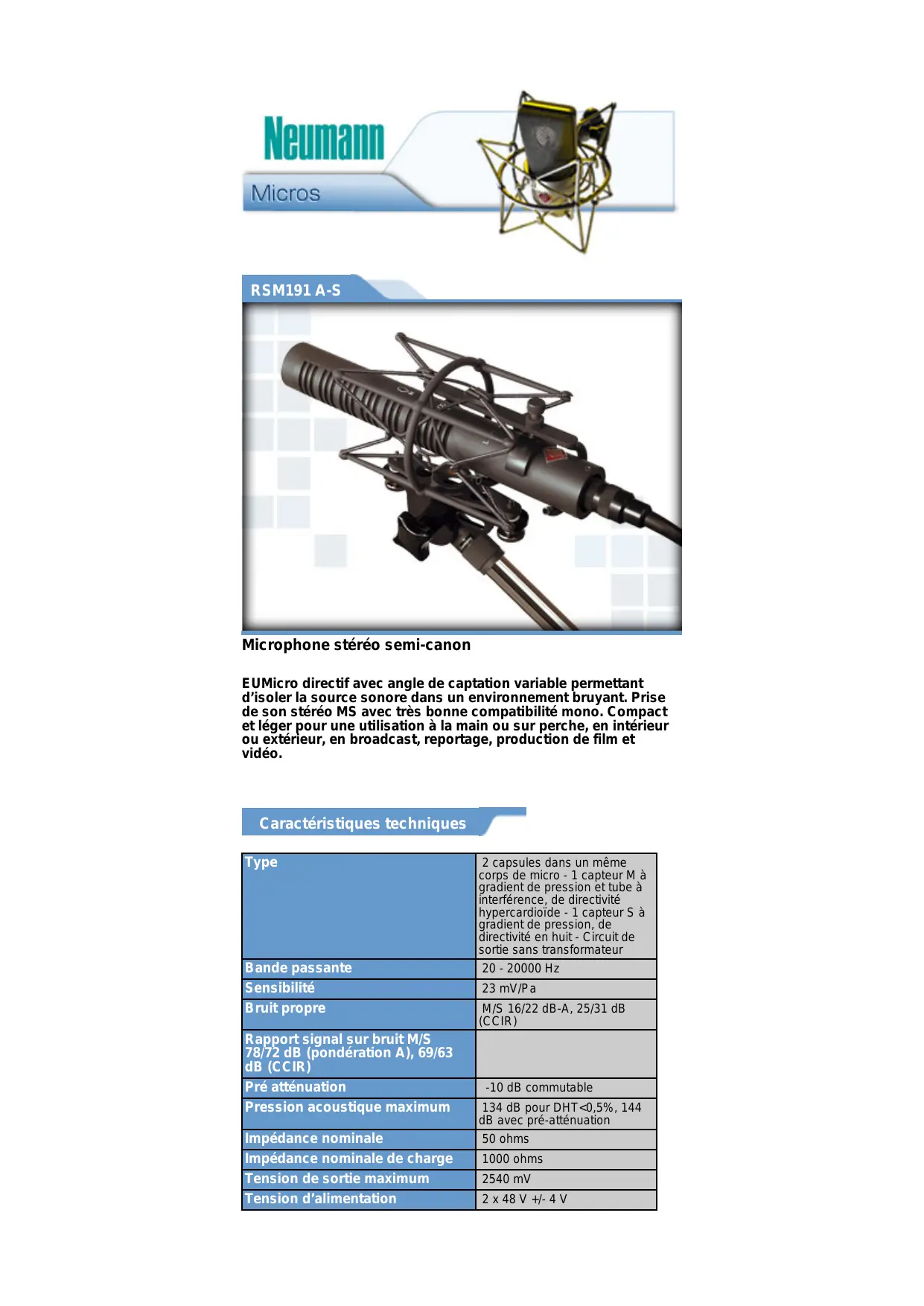 RSM191 A-S - Microphone NEUMANN - Notice d'utilisation et mode d'emploi gratuit