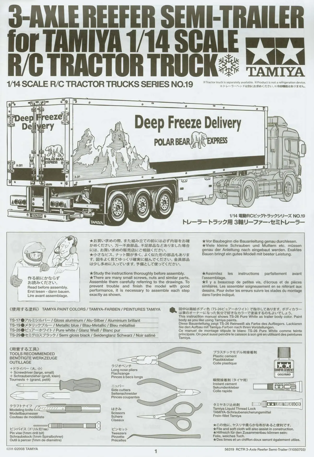 Retrouvez gratuitement la notice de l'appareil AXLE REEFER SEMI-TRAILLER TAMIYA au format PDF.