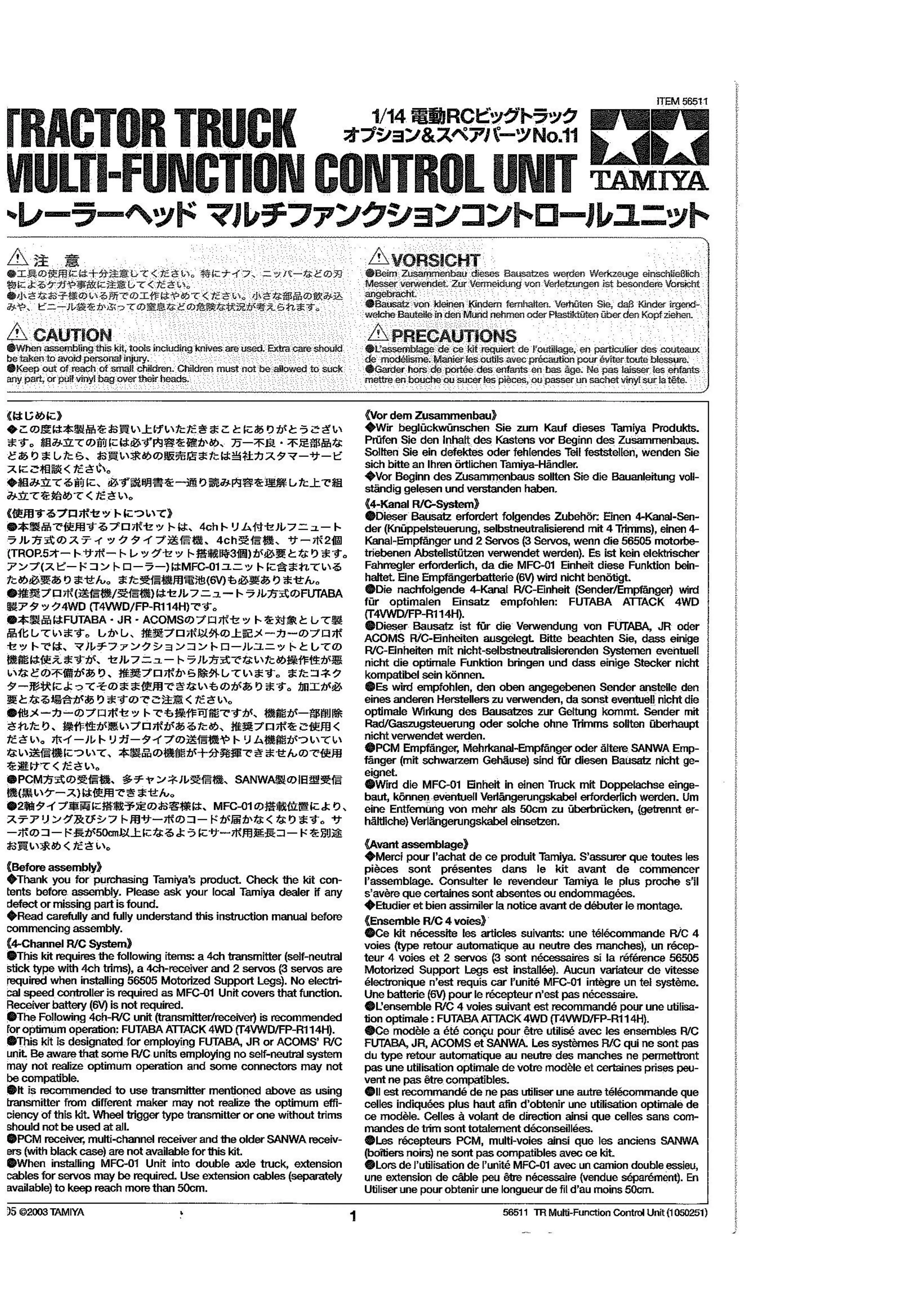 Retrouvez gratuitement la notice de l'appareil TRACTOR TRUCK MFC-01 TAMIYA au format PDF.