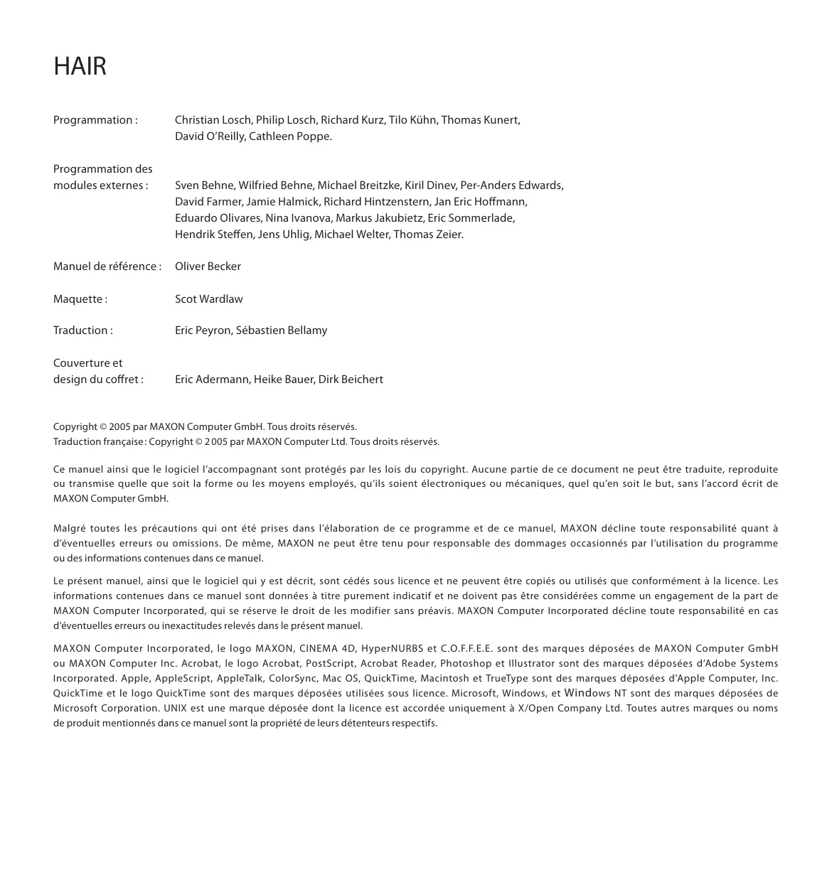 Traduction française: Copyright © 2005 par MAXON Computer GmbH. Tous droits réservés.