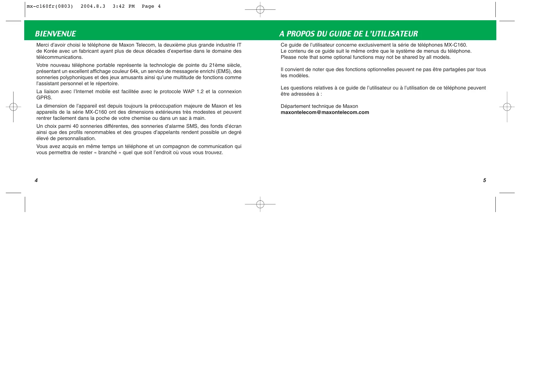 MX-C160 - Téléphone mobile MAXON - Notice d'utilisation et mode d'emploi gratuit