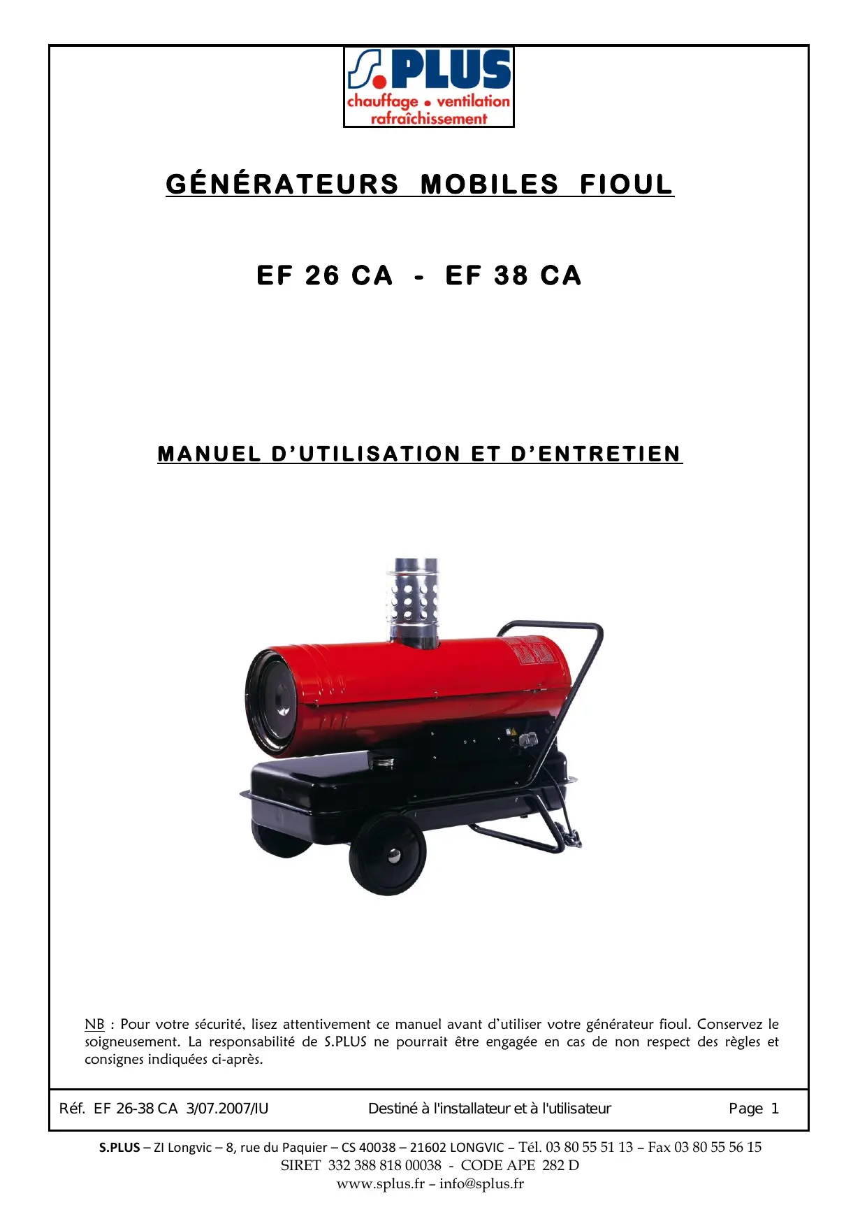 EF 26 CA - Chauffage mobile S.PLUS - Notice d'utilisation et mode d'emploi gratuit