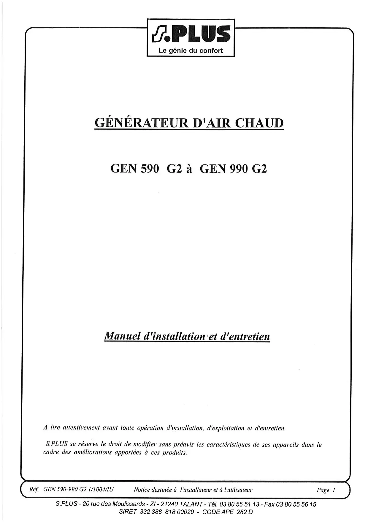 GEN 590 G2 - Chauffage S.PLUS - Notice d'utilisation et mode d'emploi gratuit