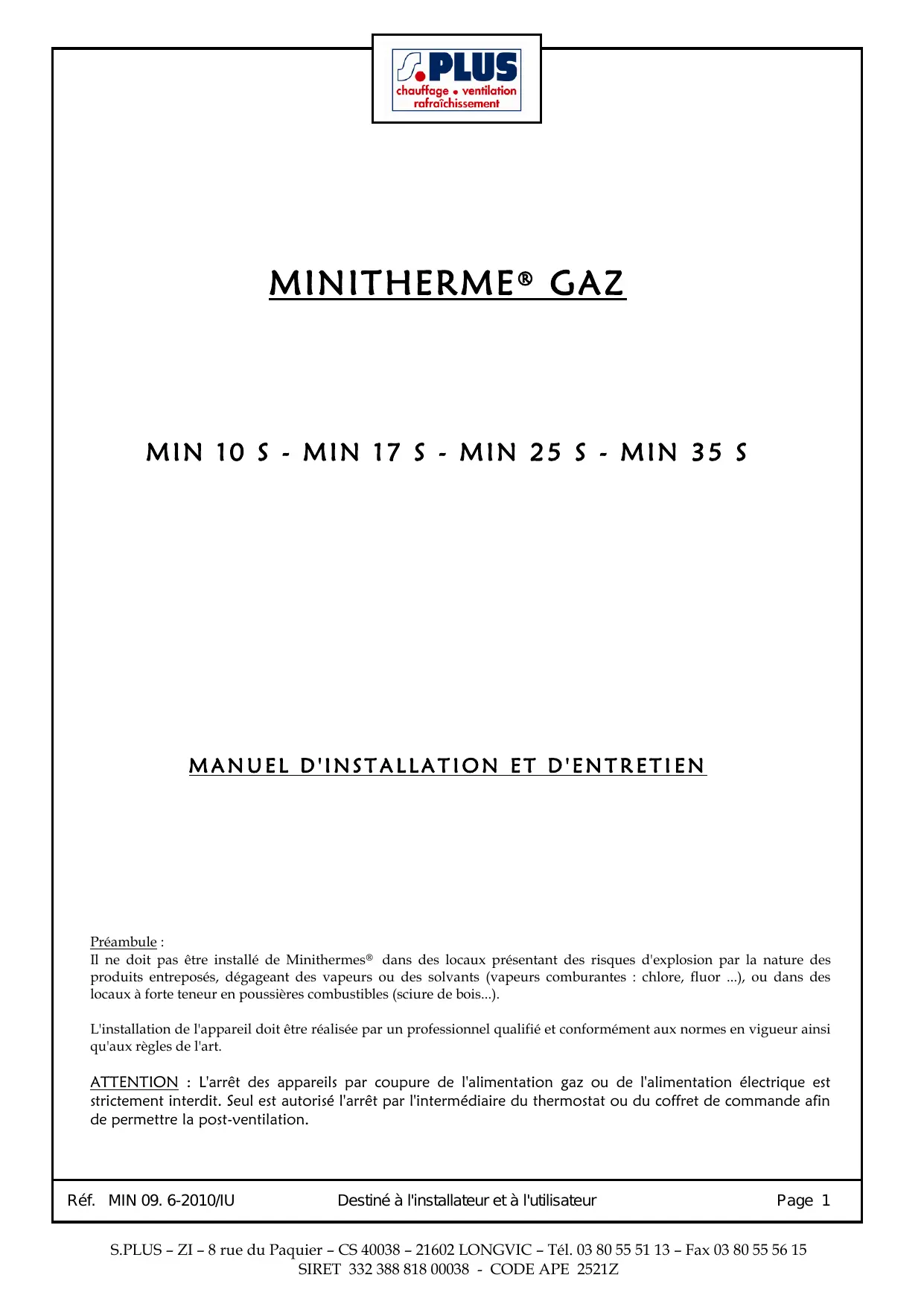 MIN 35 S - Chauffage S.PLUS - Notice d'utilisation et mode d'emploi gratuit