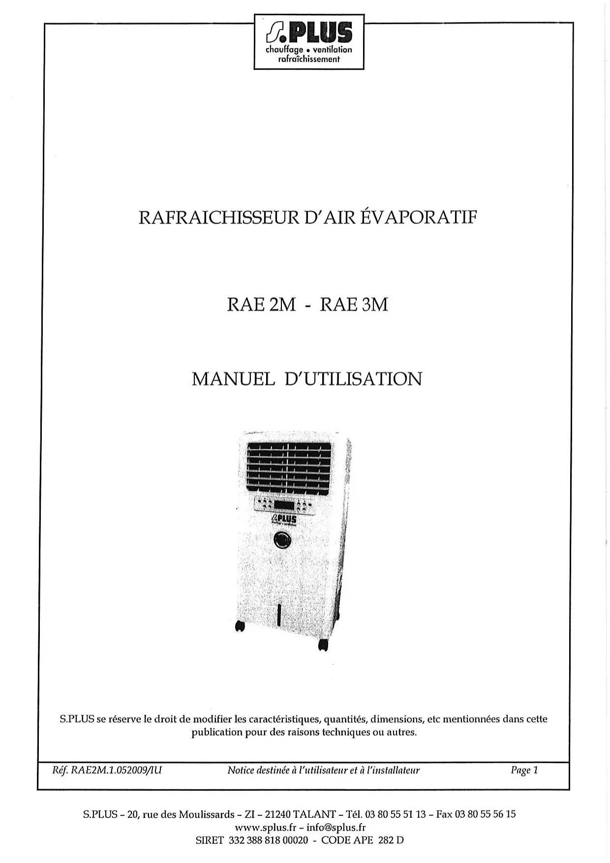 RAE 3M - Climatiseur S.PLUS - Notice d'utilisation et mode d'emploi gratuit