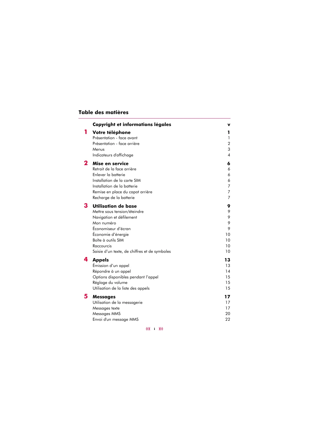 Mettre sous tension/éteindre Navigation et défilement Mon numéro Économiseur d’écran Économie d’énergie Boîte à outils SIM Raccourcis Saisie d’un texte, de chiffres et de symboles