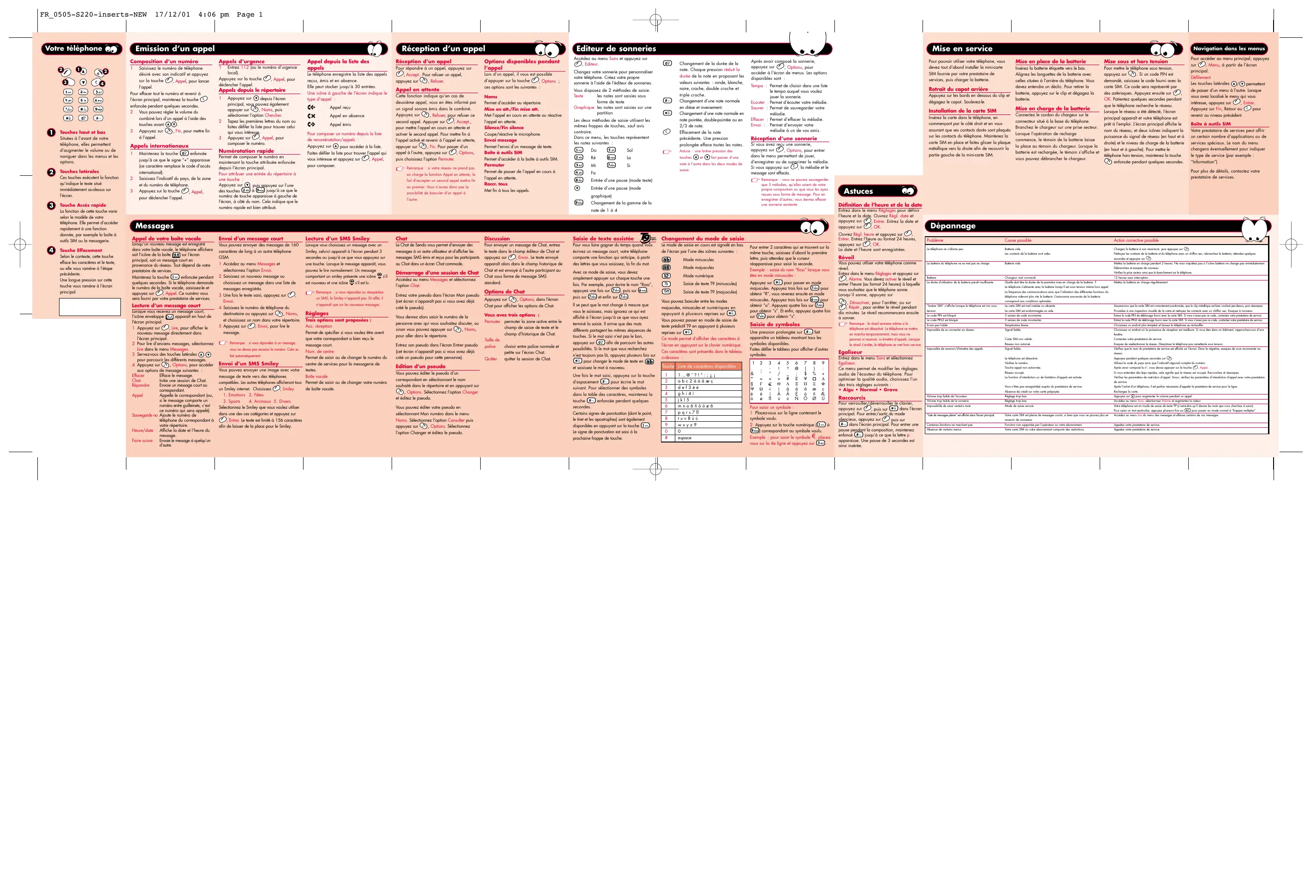 Touche Accès rapide La oncion da cat uche vais la le mode de vor légions. le permet doccéder rapidement à ne fonc donnés, pa exemple La be à ous Moule 17/12/01 Emission d’un appel Composition d'un numéro 4:06 pm Page 1 Appels d'urgence