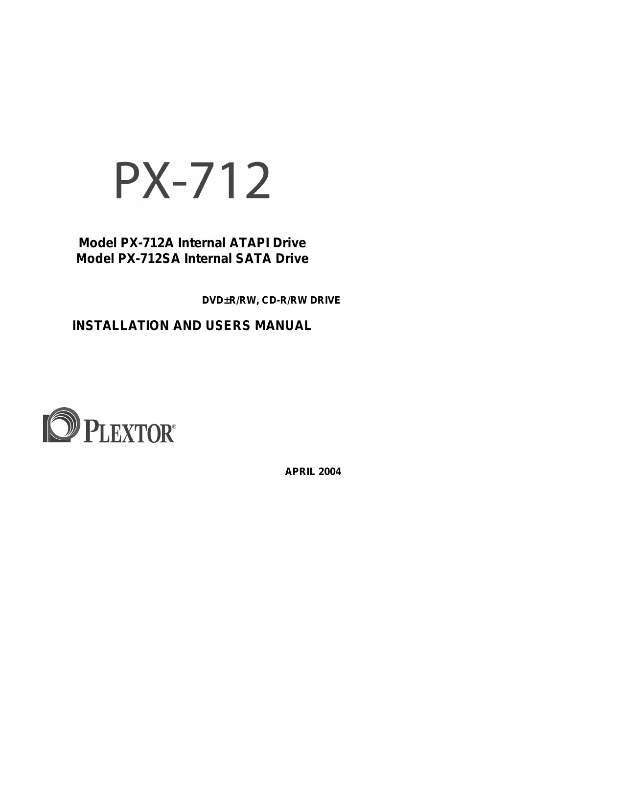 PX-712A - Graveur DVD PLEXTOR - Notice d'utilisation et mode d'emploi gratuit