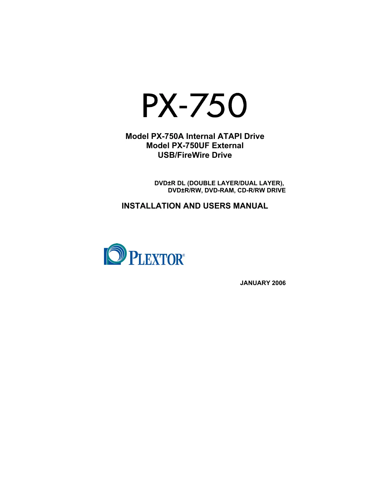 PX-750A - Lecteur/Graveur DVD PLEXTOR - Notice d'utilisation et mode d'emploi gratuit
