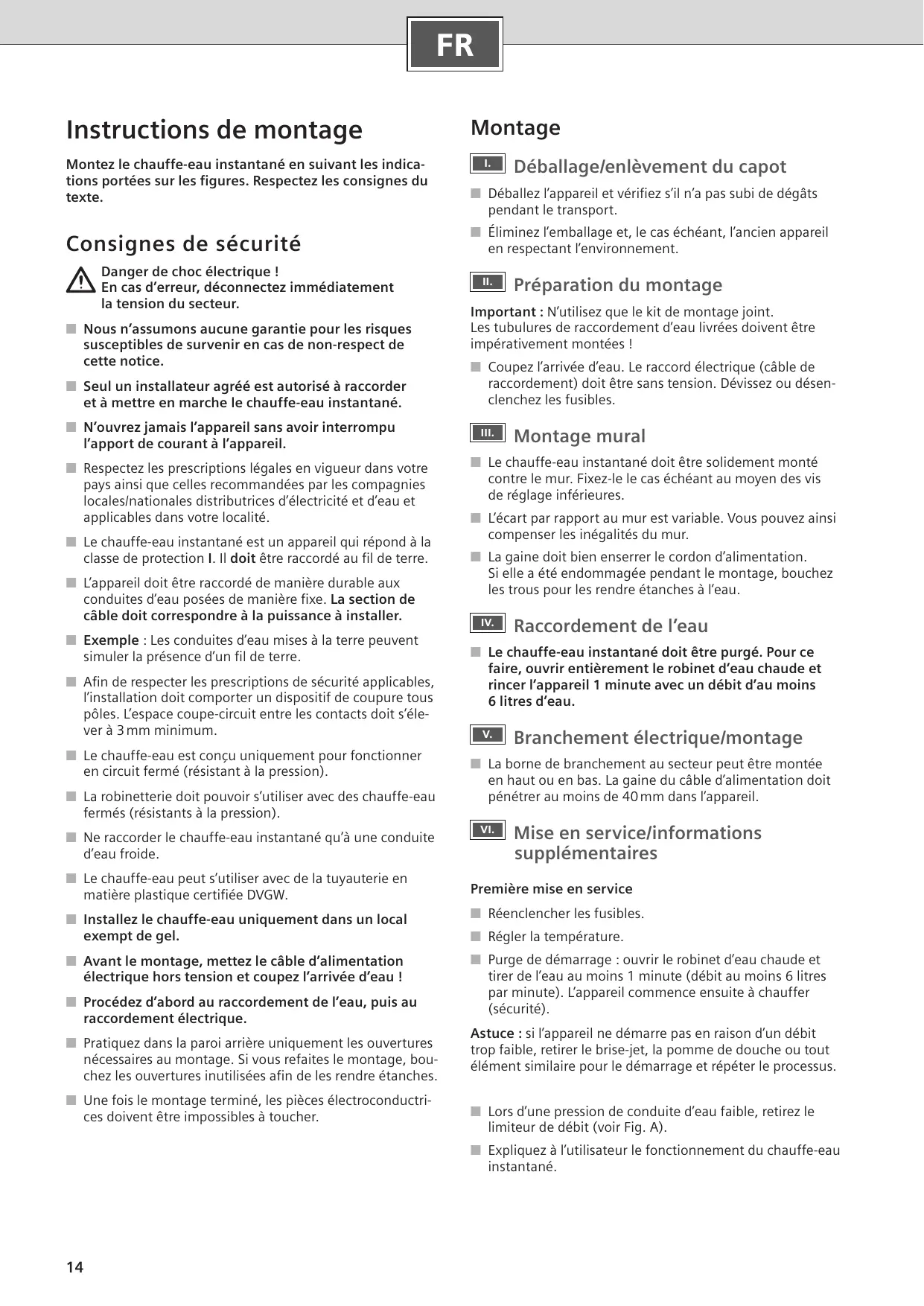 EN Installation instructions FR Instructions de montage Montez le chauffe-eau instantané en suivant les indications portées sur les figures. Respectez les consignes du texte.