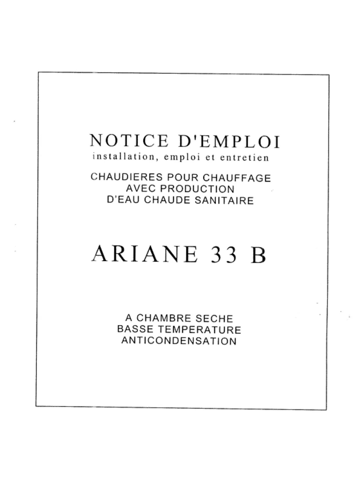33 B - Chaudière ARIANE - Notice d'utilisation et mode d'emploi gratuit