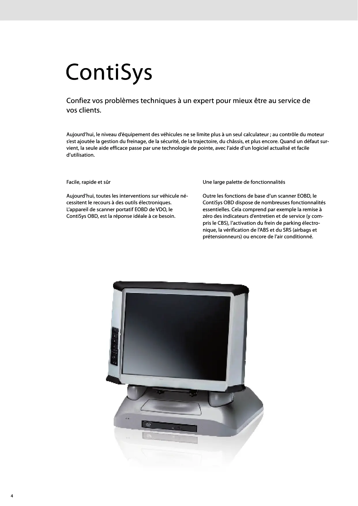 Aujourd'hui, toutes les interventions sur vehicule nécessitant le recours à des outils électroniques. L'appareil de scanner portatif EOBD de VDO, le ContiSys OBD, est la réponse ideale à ce besoin.