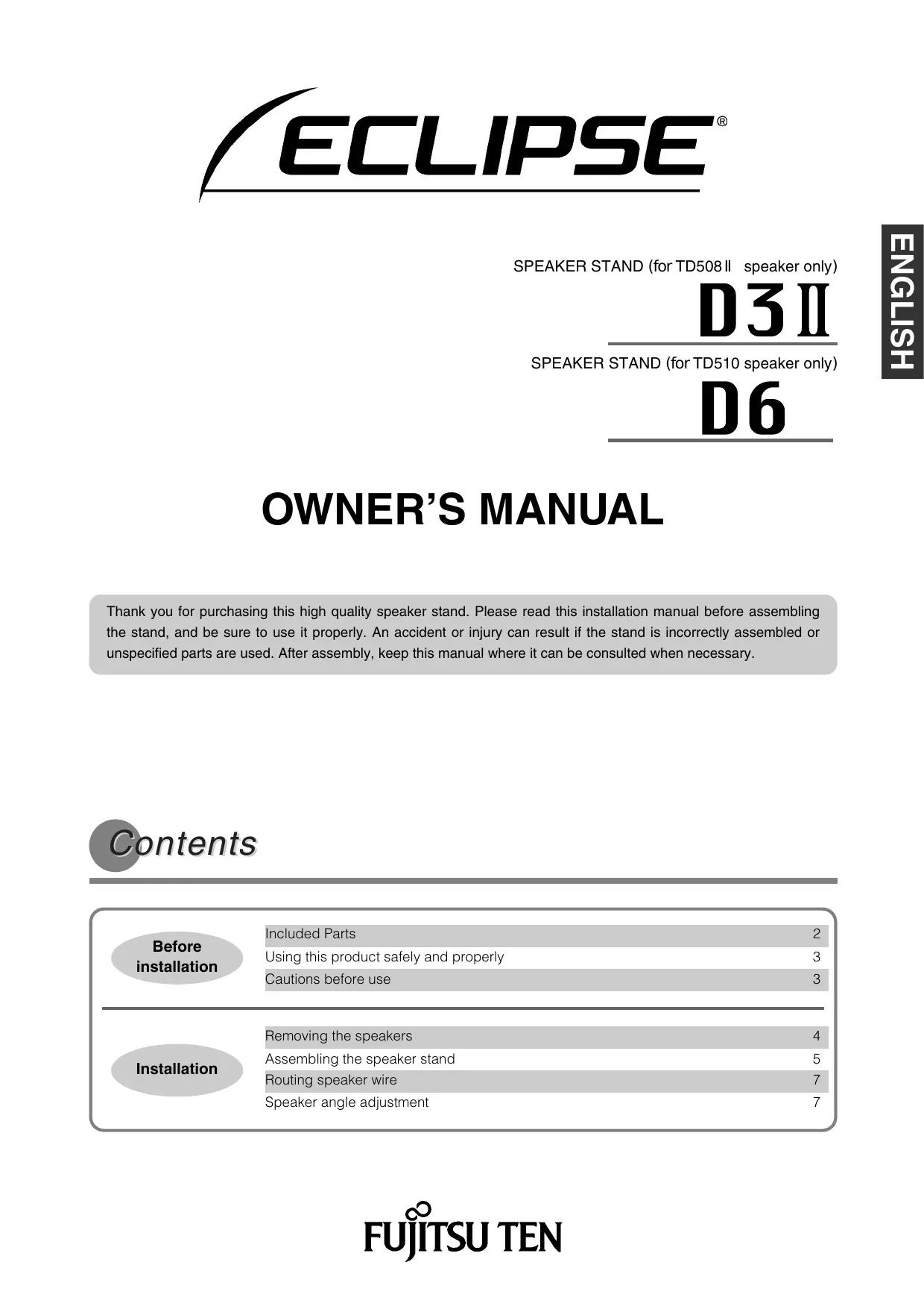 D6 - Support haut-parleur ECLIPSE - Notice d'utilisation et mode d'emploi gratuit