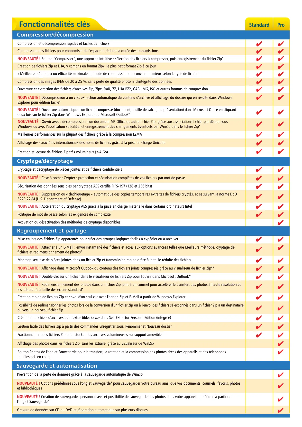 | NOUVAUTÉ ! Accès facile aux fichiers, aux travaux et aux commandes WinZip les plus récents, grâce à la prise en charge des listes de raccourcis de Windows 7* | ✓ | ✓ |