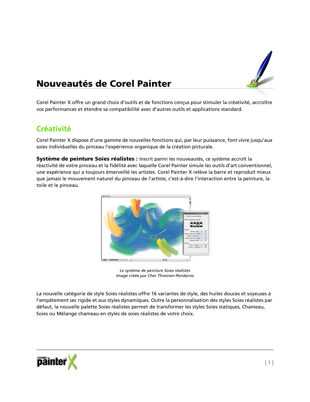 Corel Painter X dispose d'une gamme de nouvelles fonctions qui, par leur puissance, font vivre jusqu'àux soies individuelles du pinceau l'expérience organique de la creation picturale.