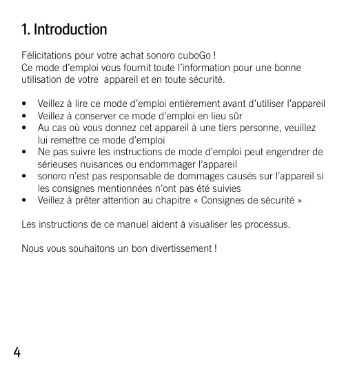- sonoro n'est pas responsable de dommages causés sur l'appareil si les consignes mentionnées n'ont pas été suivies