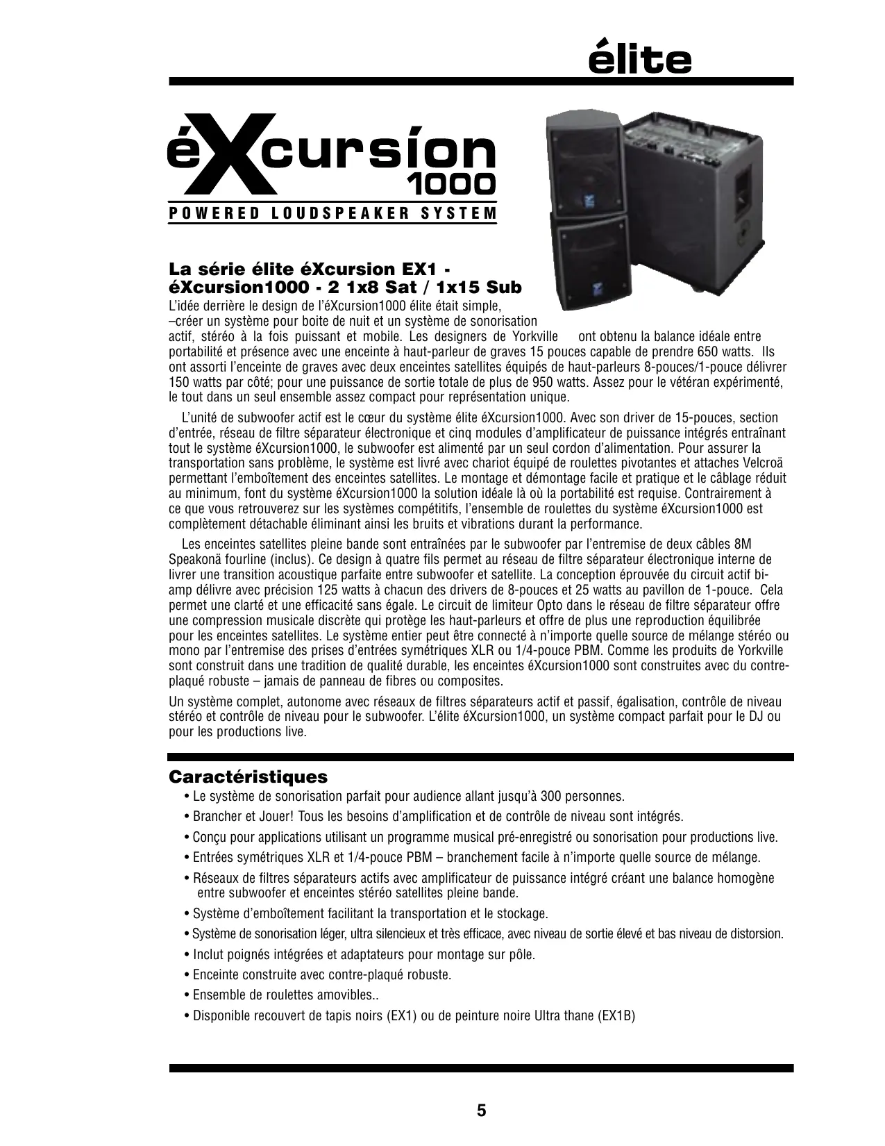ELITE EXCURSION 1000 - Enceinte audio YORKVILLE - Notice d'utilisation et mode d'emploi gratuit