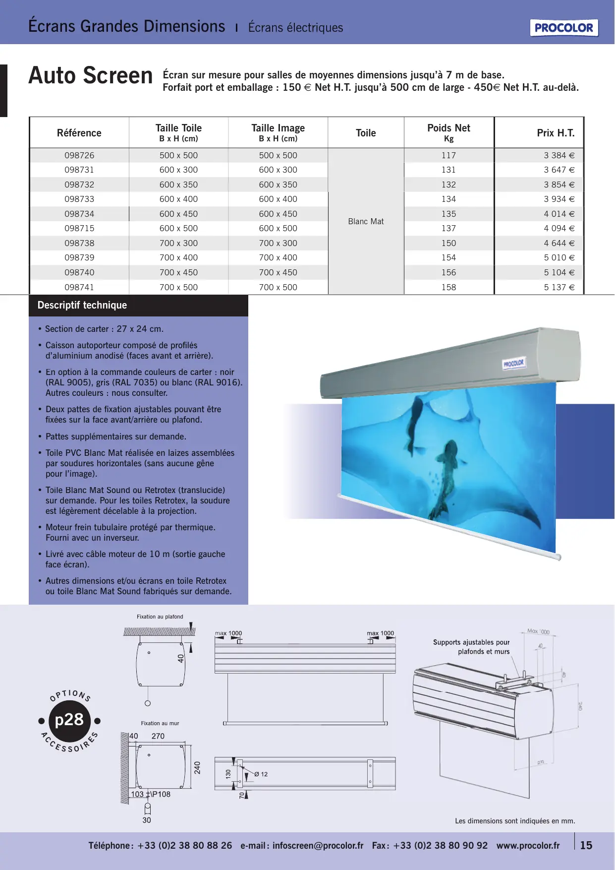 - Autres dimensions et/ou écans en toile Retrotex ou toile Blanc Mat Sound fabriqués sur demande.