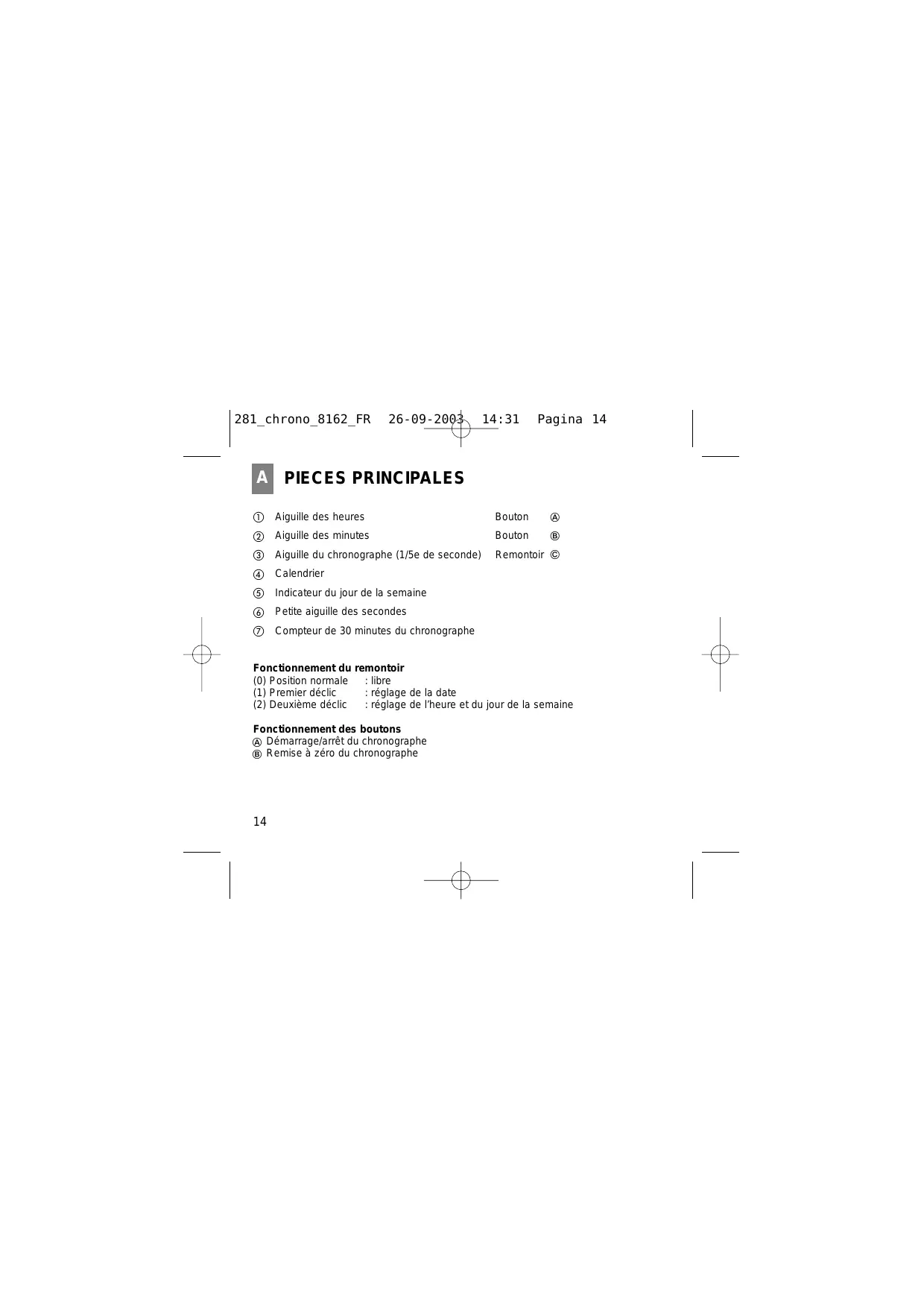 2) Appuyer sur pour regler la petite aiguille des secondes du chronographe sur la position "0".