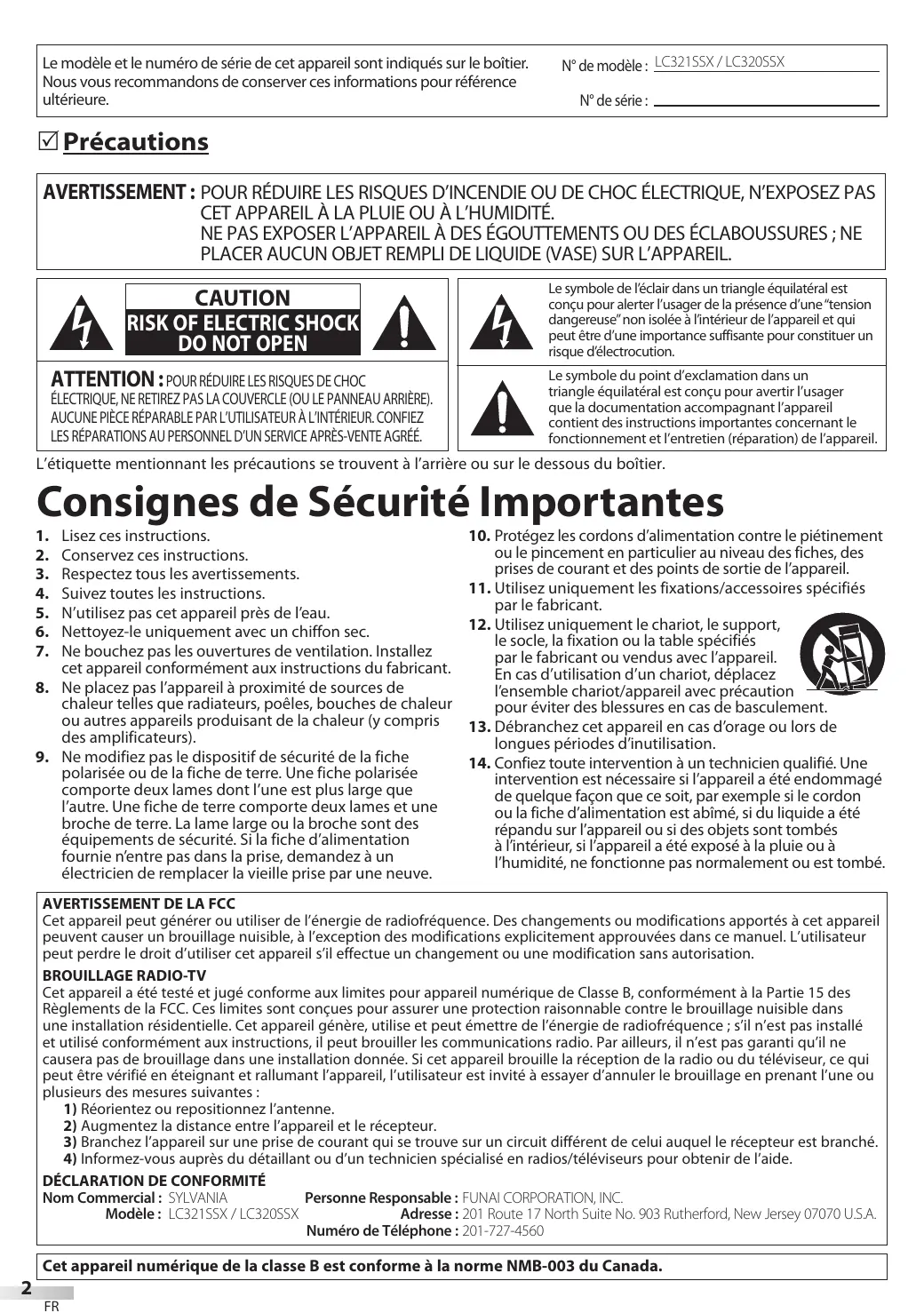 Retrouvez gratuitement la notice de l'appareil LC321SSX SYLVANIA au format PDF.