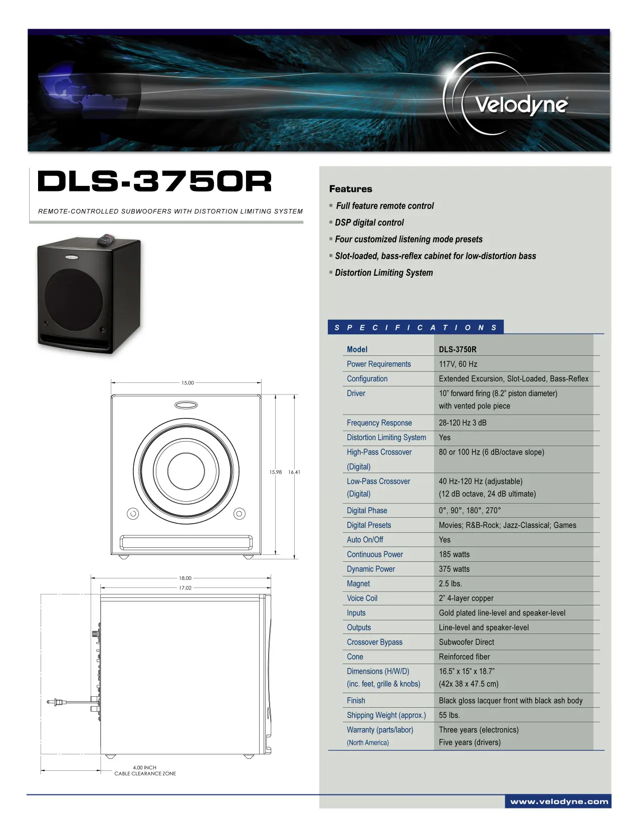 Retrouvez gratuitement la notice de l'appareil DLS-3750R VELODYNE au format PDF.
