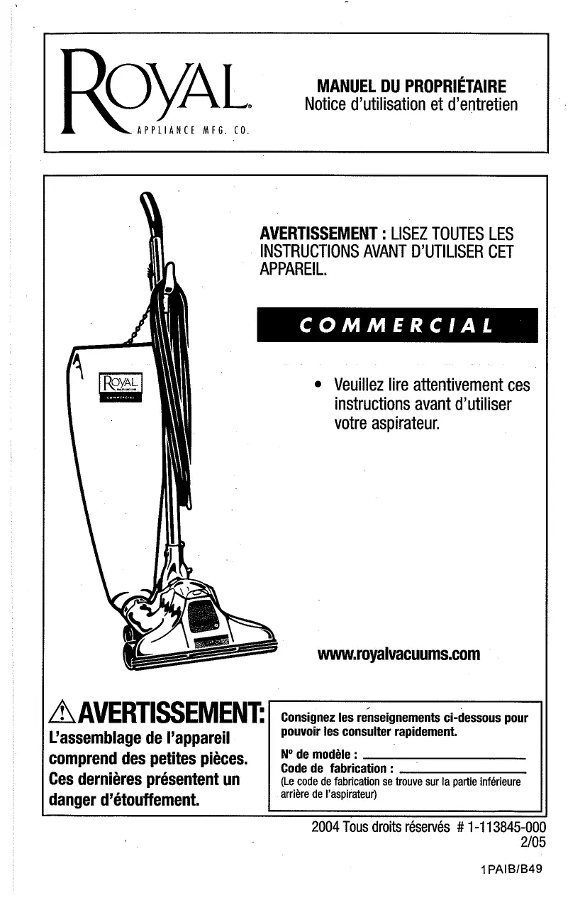 M1018Z - Aspirateur ROYAL - Notice d'utilisation et mode d'emploi gratuit