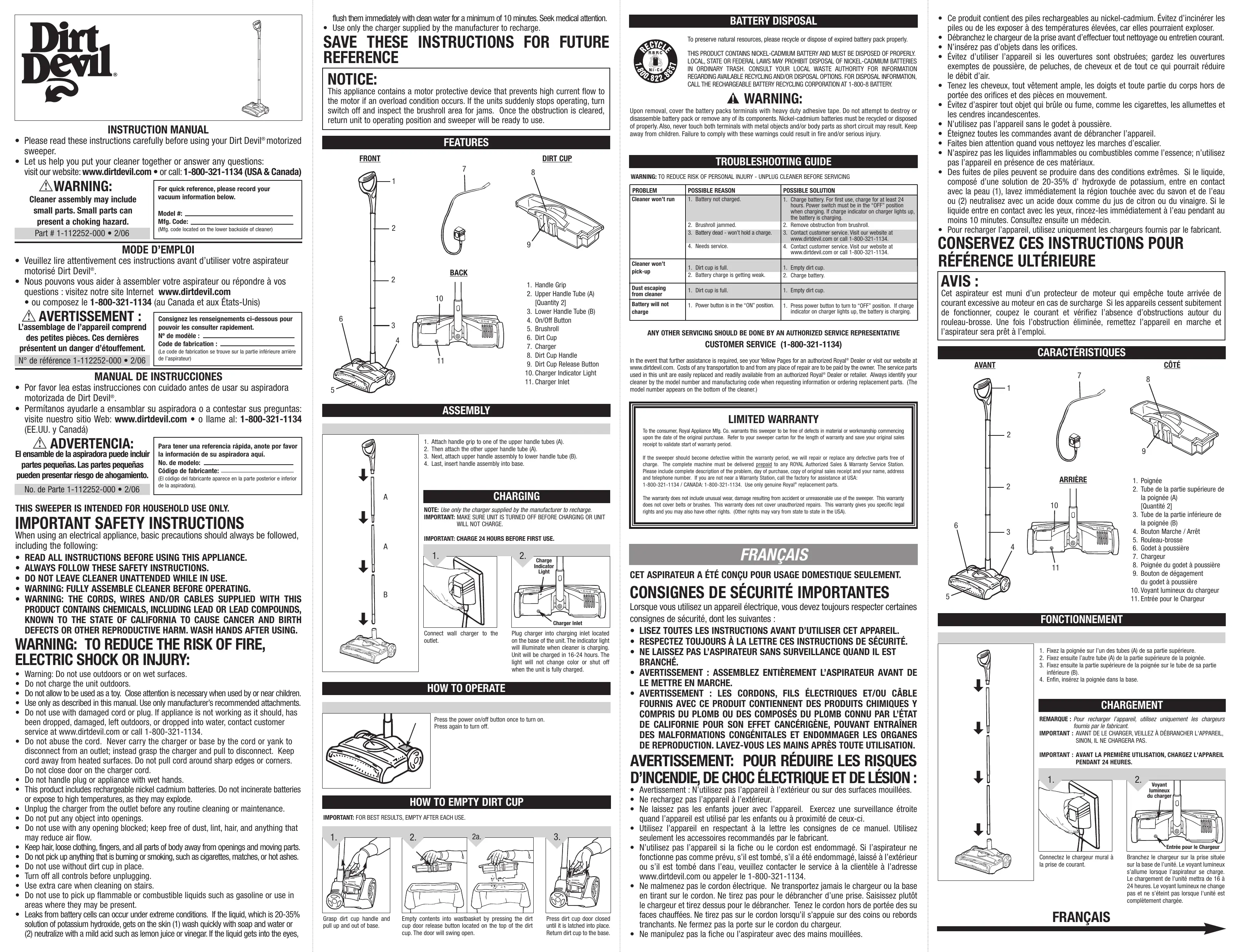 - Veuillez lire attentivement ces instructions avant d'utiliser votre aspirateur motorisé Dirt Devil®.