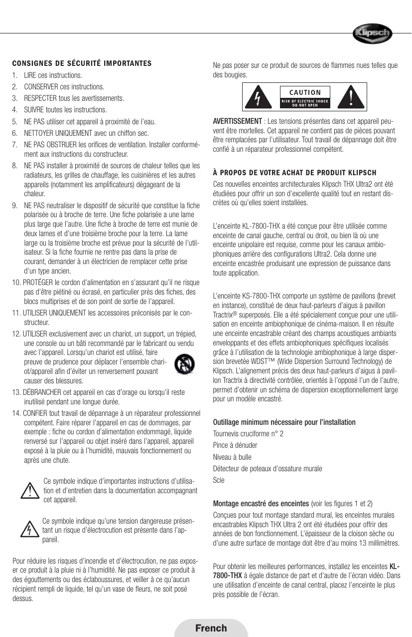 KS-7800-THX - Enceinte encastrable KLIPSCH - Notice d'utilisation et mode d'emploi gratuit