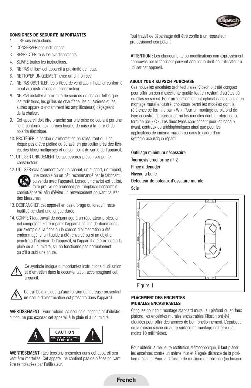 Ces nouvelles enceintes architecturales Klipsch ont été conçues pour offrir un son d'excellente qualité tout en restant discrétés ou qu'elles se soient. Pour un fonctionnement optimal dans le cas d'un montage mural encastré, CHOISSES parmi les modèles dont la réference se termine par « W ». Pour un montage au plafond de type encastré, choisissez parmi les modèles dont la réference se termine par « C ». Les deux types conveniennent pour les canaux avant, centraux ou ambiophoniques ainsi que pour les applications de cinema-maison ou dans le cadre d'un système acoustique réparti.