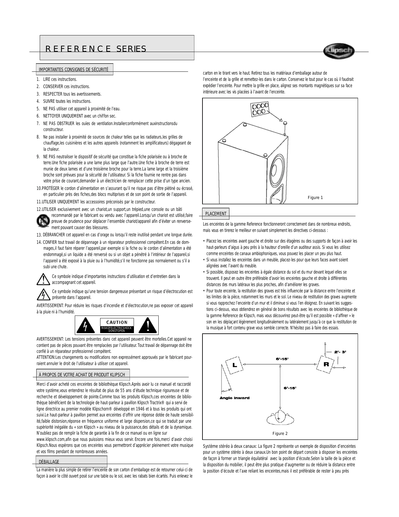 MODE D'EMPLOI REF III BOOKSHELVES KLIPSCH