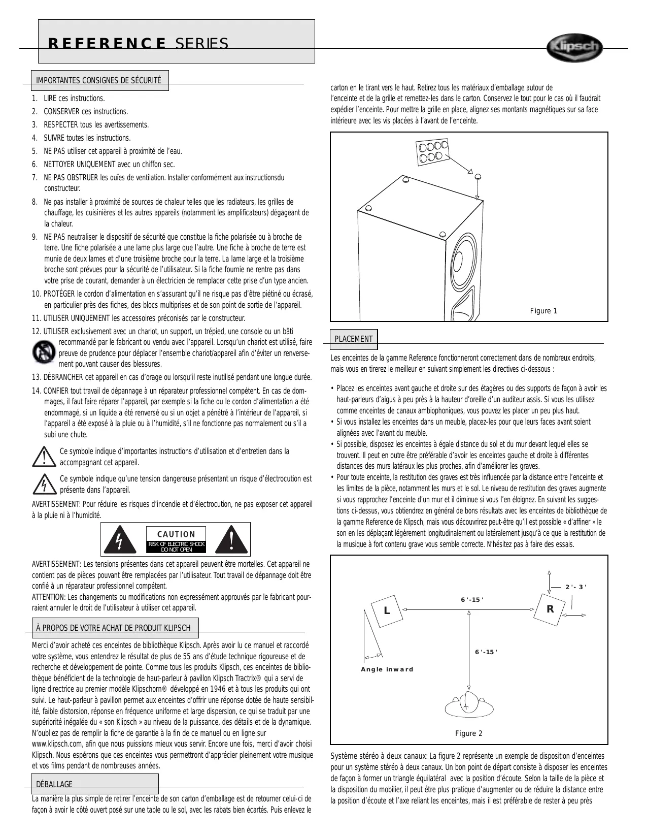 MODE D'EMPLOI REFERENCE BOOKSHELVES KLIPSCH
