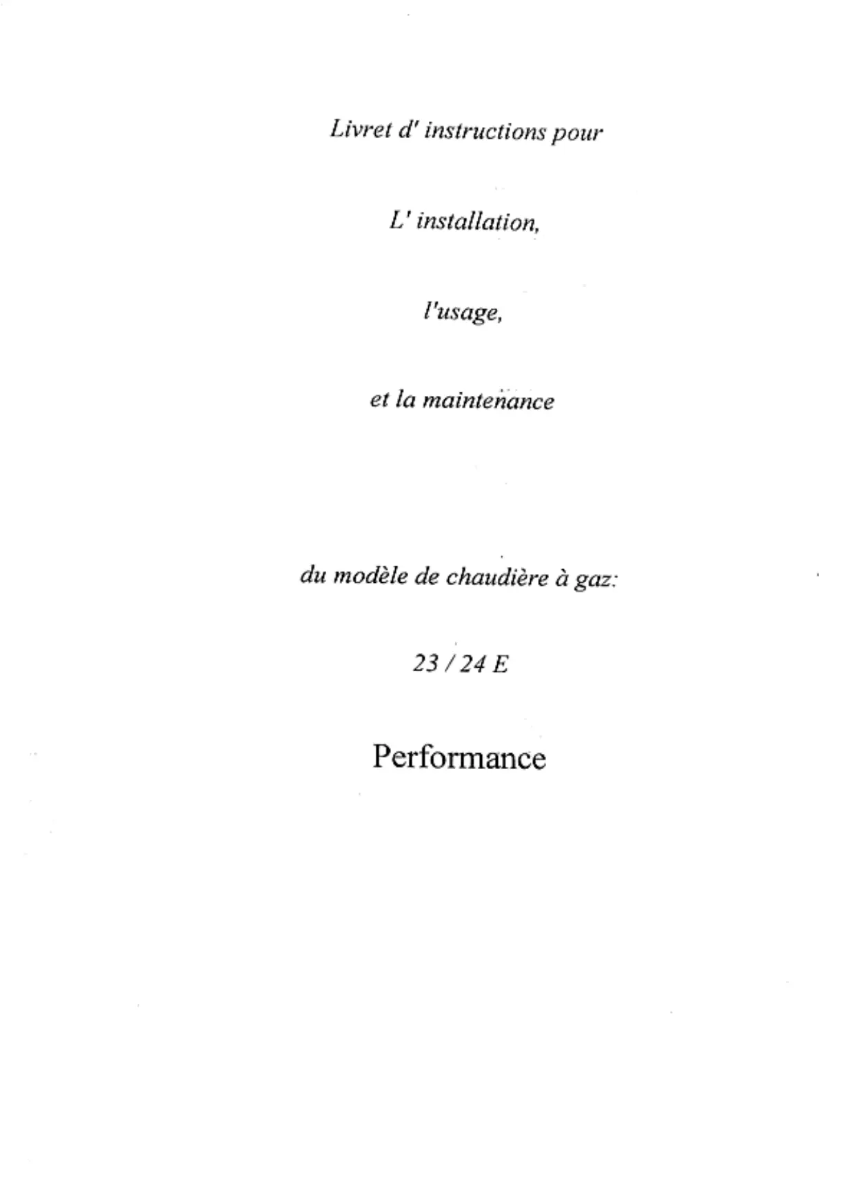 23 - Chaudière PERFORMANCE - Notice d'utilisation et mode d'emploi gratuit