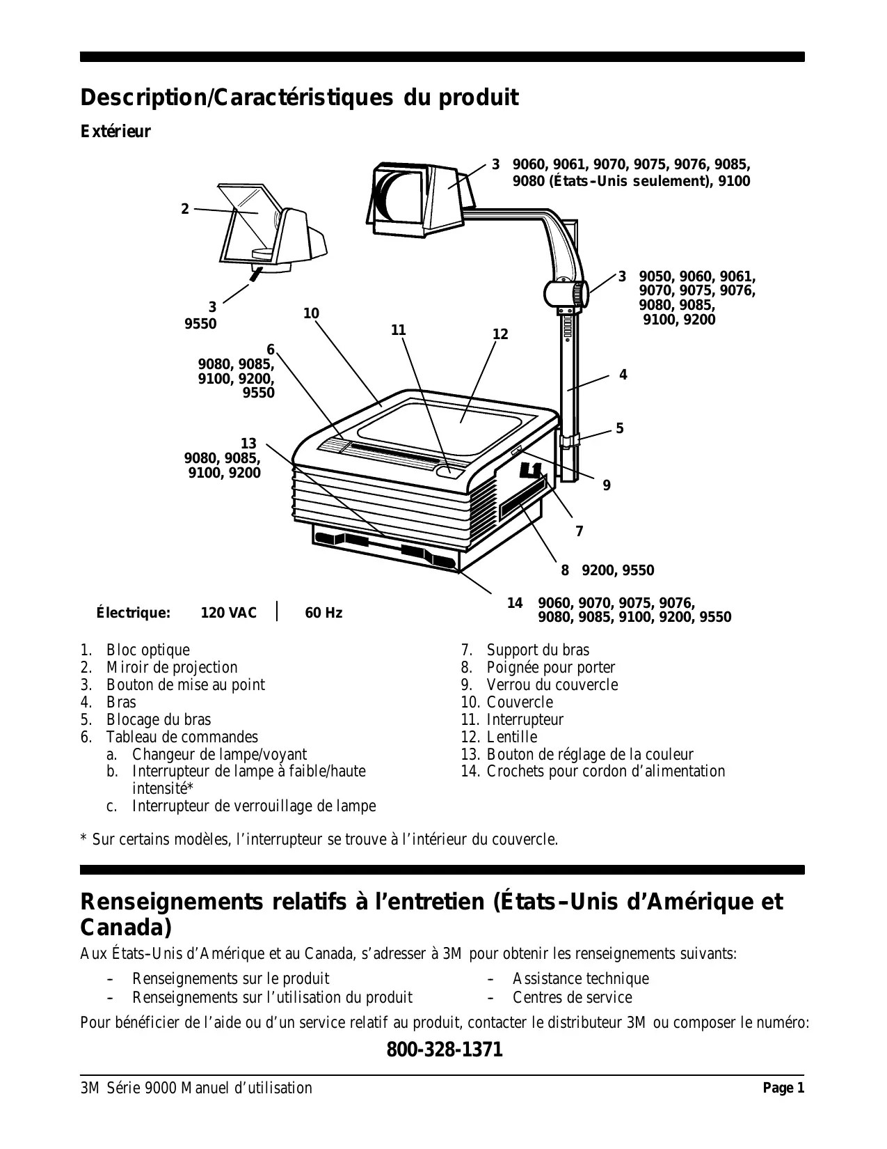 1. Les rétroprojecteurs 9080, 9085, 9100, 9200 et