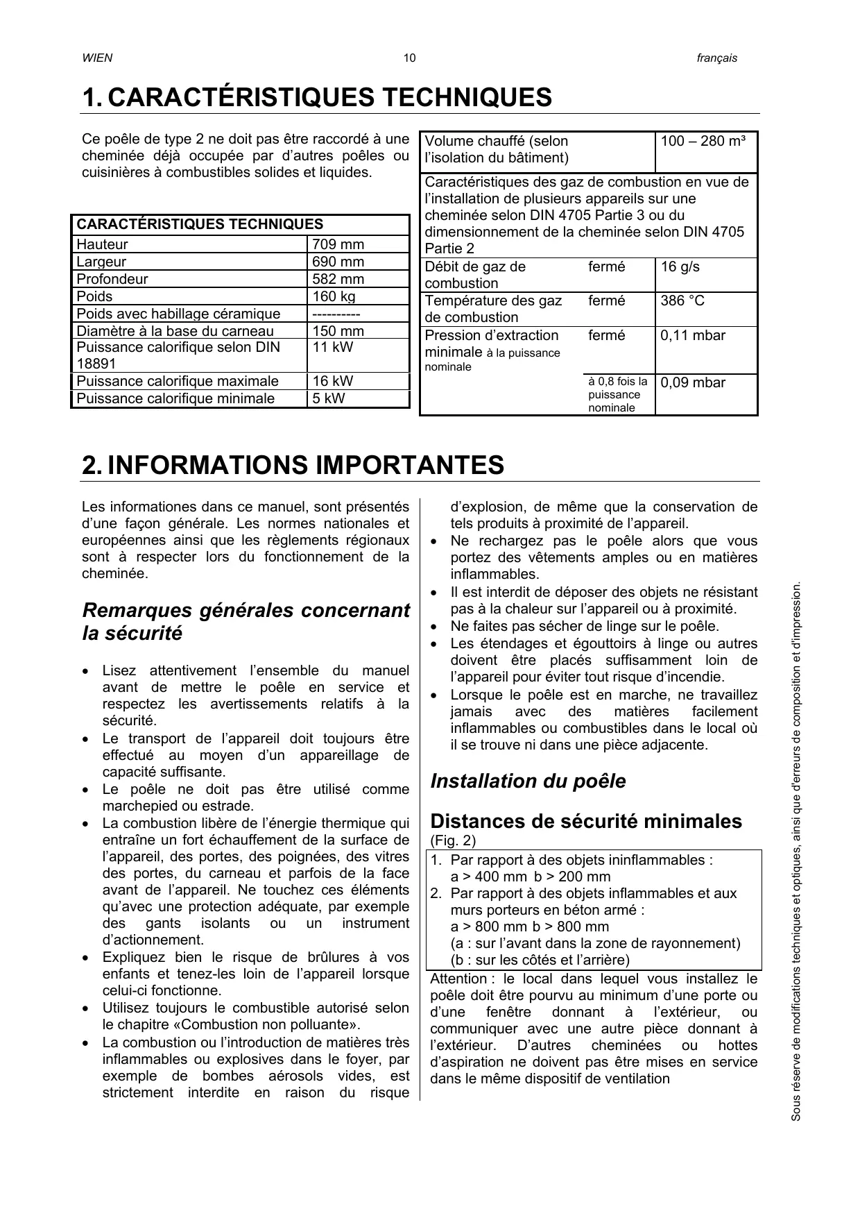 Les informations dans ce manuel sont présentées d'une façon générale. Les normes nationales et européennes ainsi que les règlements régionaux sont à respecter lors du fonctionnement de la cheminée.