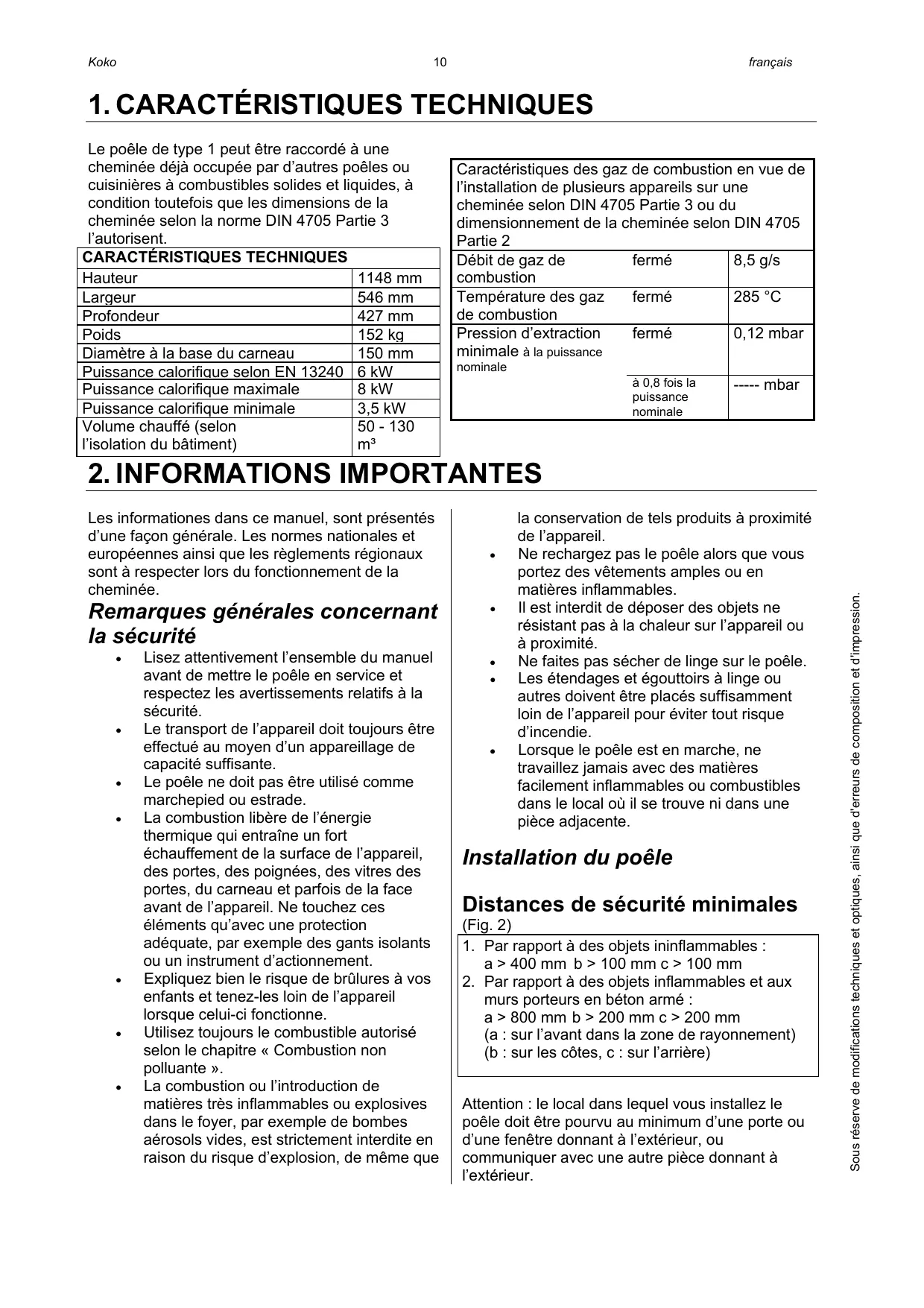 Les informations dans ce manuel sont présentées d'une façon générale. Les normes nationales et européennes ainsi que les règlements régionaux sont à respecter lors du fonctionnement de la cheminée.