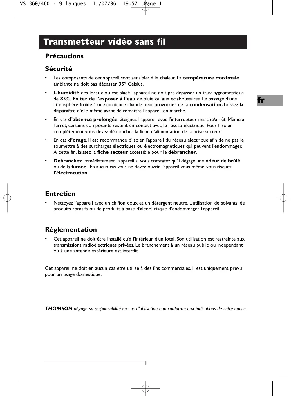 THOMSON dégage sa responsabilité en cas d’utilisation non conforme aux indications de cette notice.