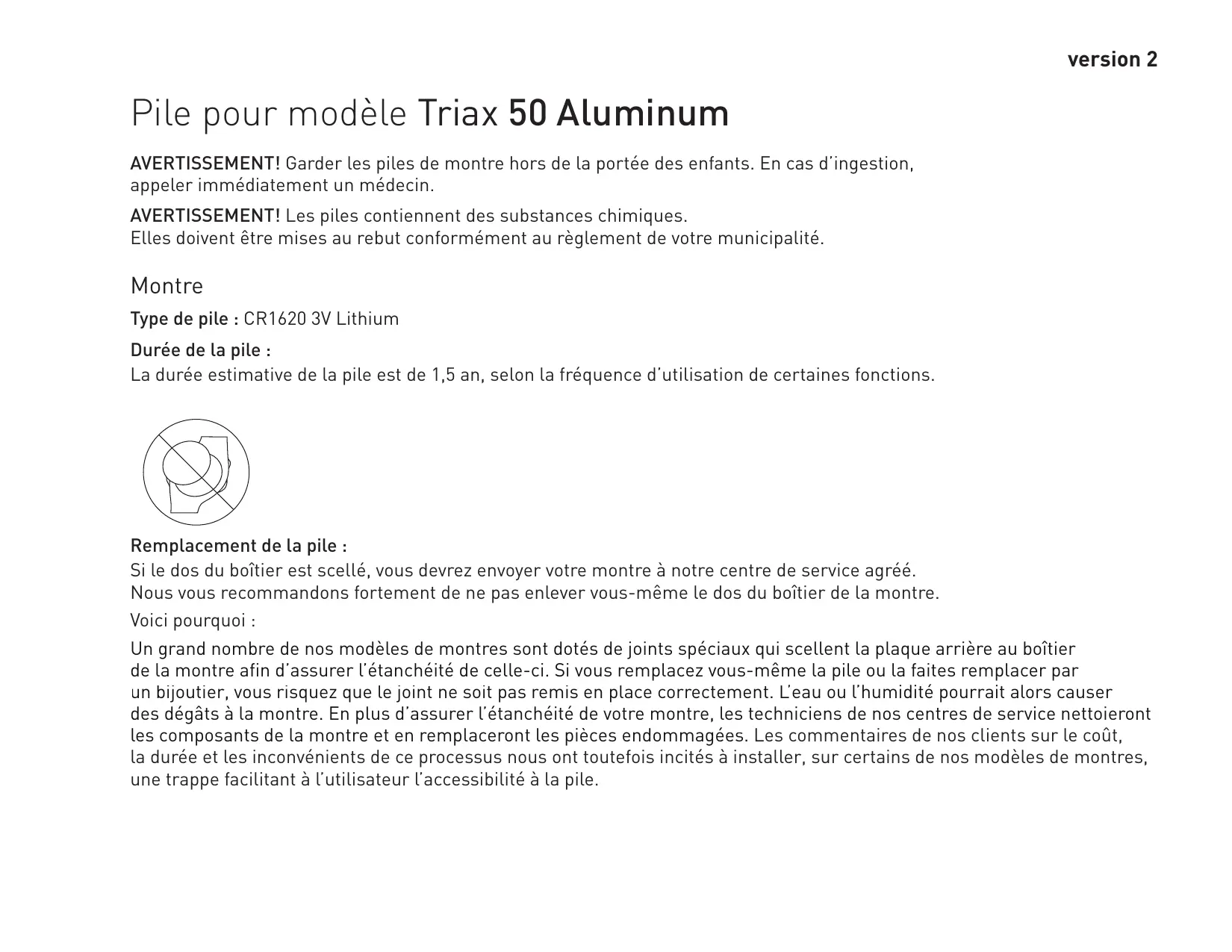 AVERTISSEMENT! Garder les piles de montre hors de la portée des enfants. En cas d'ingestion, appeler immidiatement un médecin.
