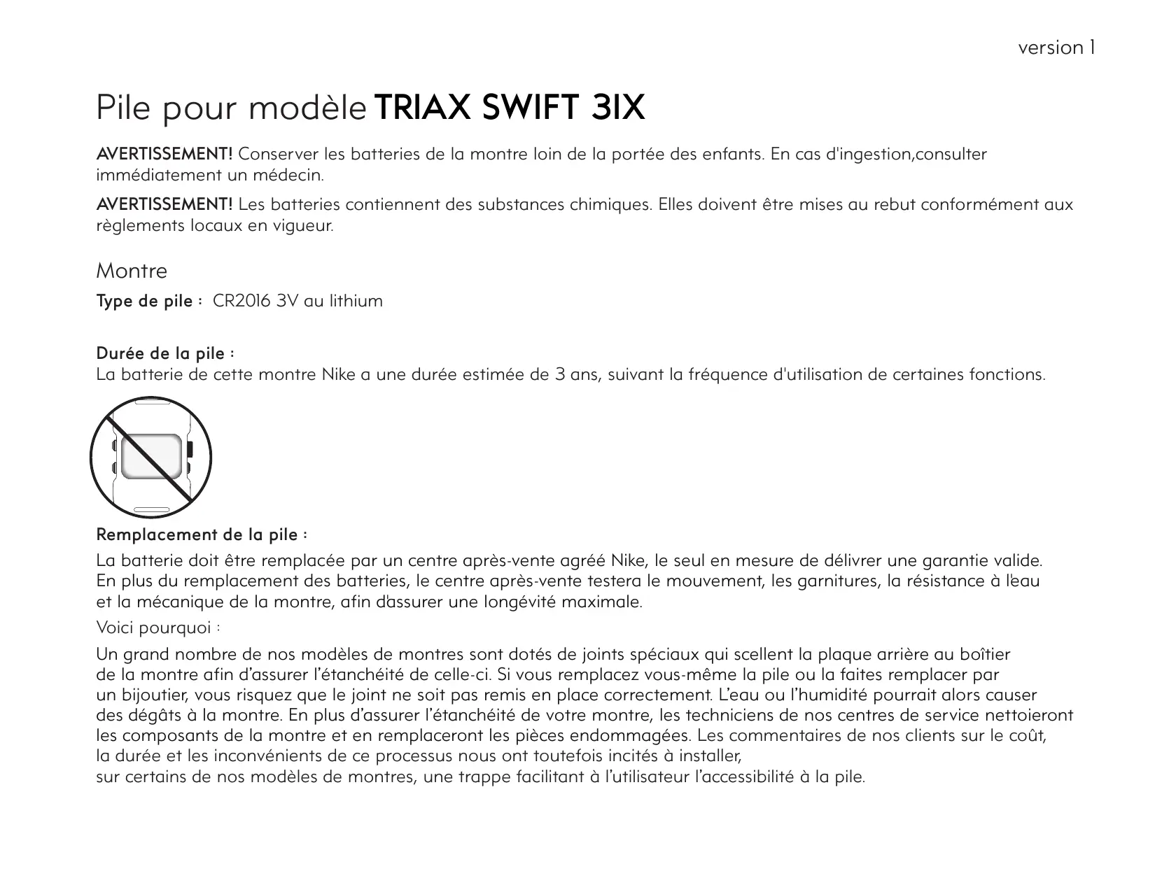 TSW_3IX - Pile bouton NIKE - Notice d'utilisation et mode d'emploi gratuit