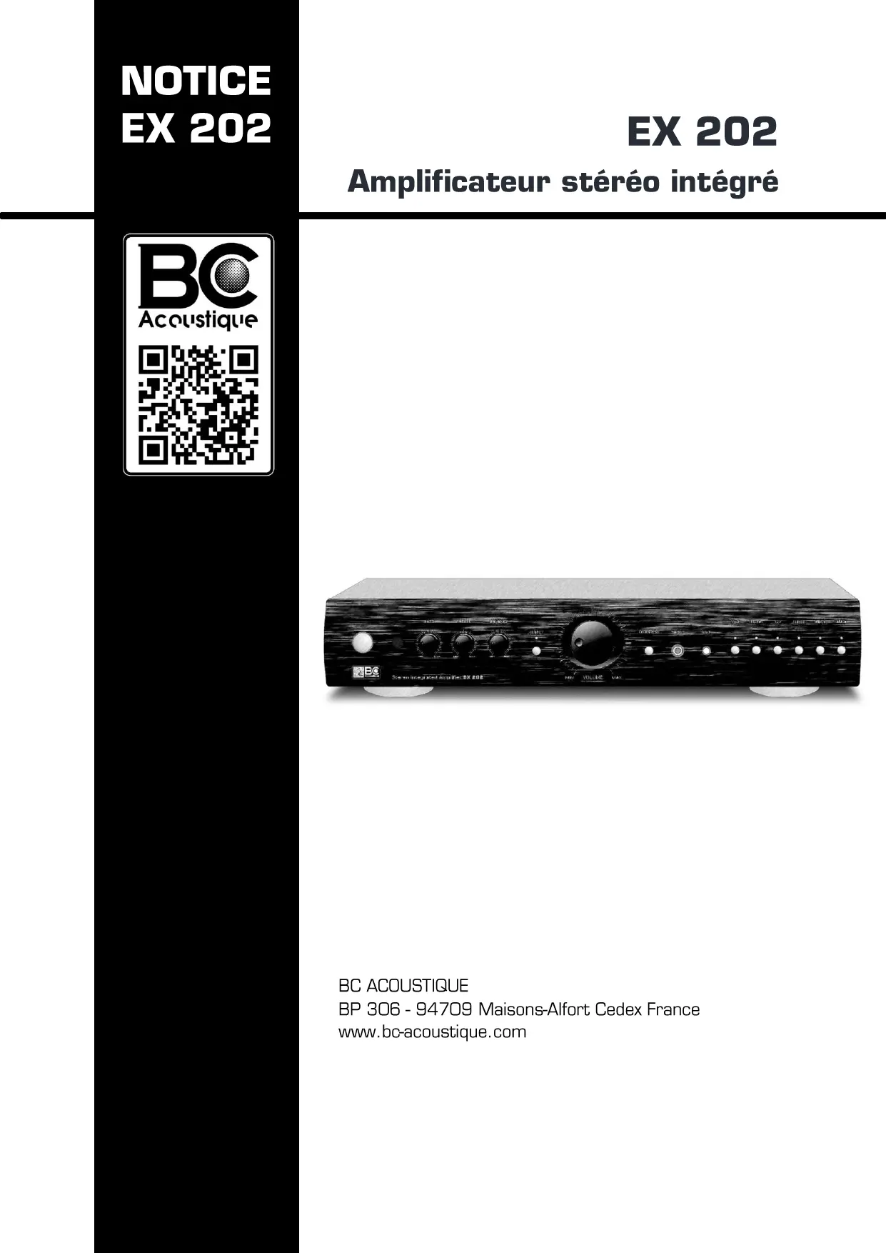 EX202 - Amplificateur audio BC ACOUSTIQUE - Notice d'utilisation et mode d'emploi gratuit