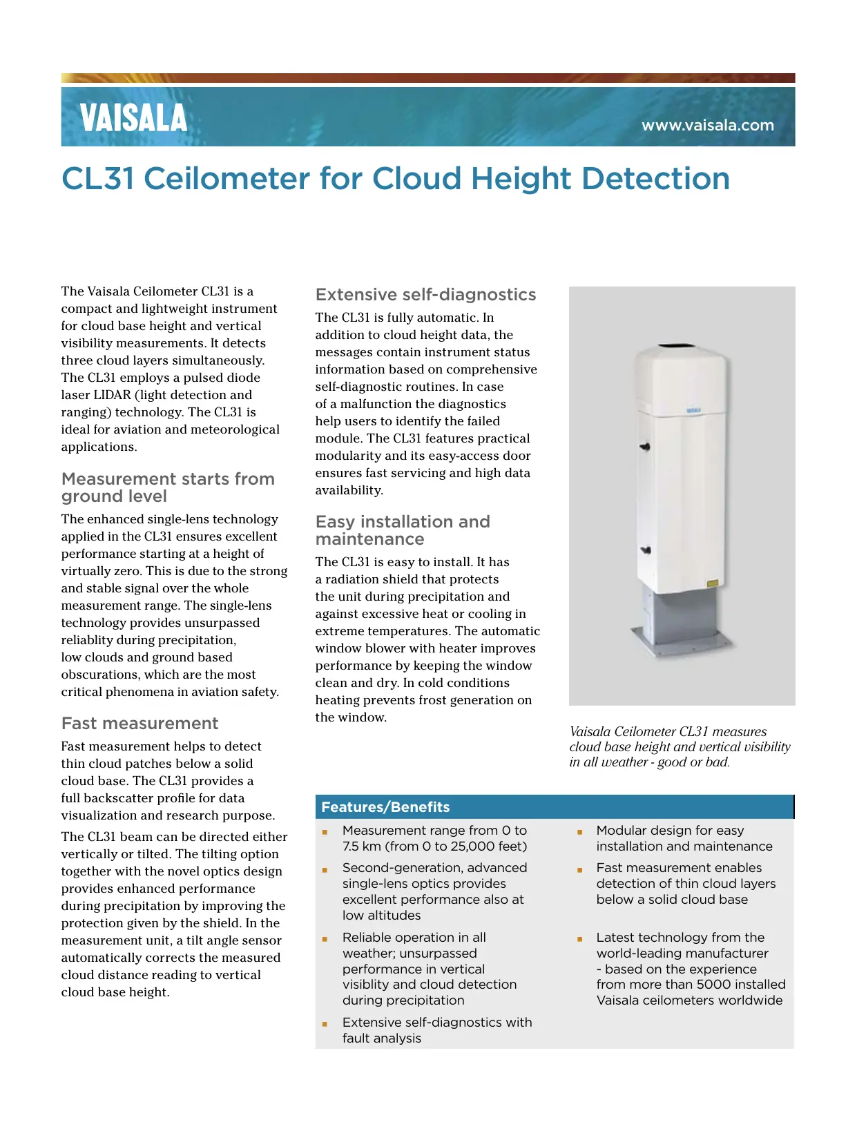 Retrouvez gratuitement la notice de l'appareil CL31 VAISALA au format PDF.