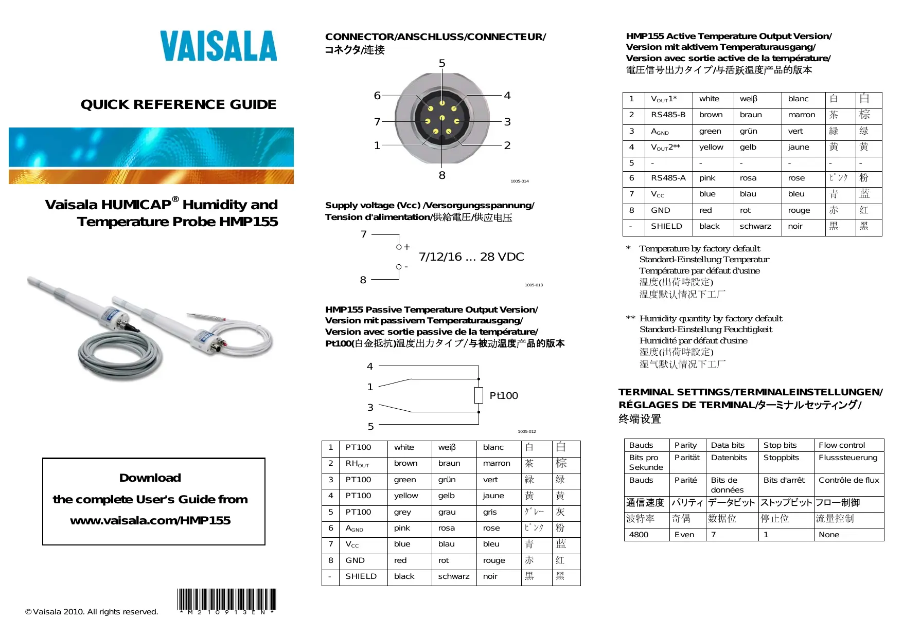 HMP155 - Capteur de température et d'humidité VAISALA - Notice d'utilisation et mode d'emploi gratuit