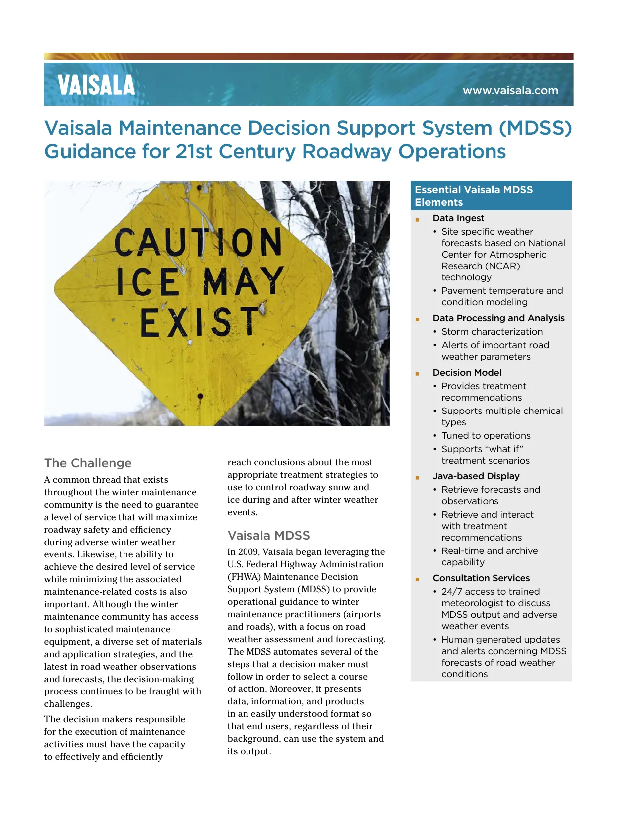 Téléchargez la notice de votre Système de gestion de la maintenance au format PDF gratuitement ! Retrouvez votre notice MDSS - VAISALA et reprennez votre appareil électronique en main. Sur cette page sont publiés tous les documents nécessaires à l'utilisation de votre appareil MDSS de la marque VAISALA.