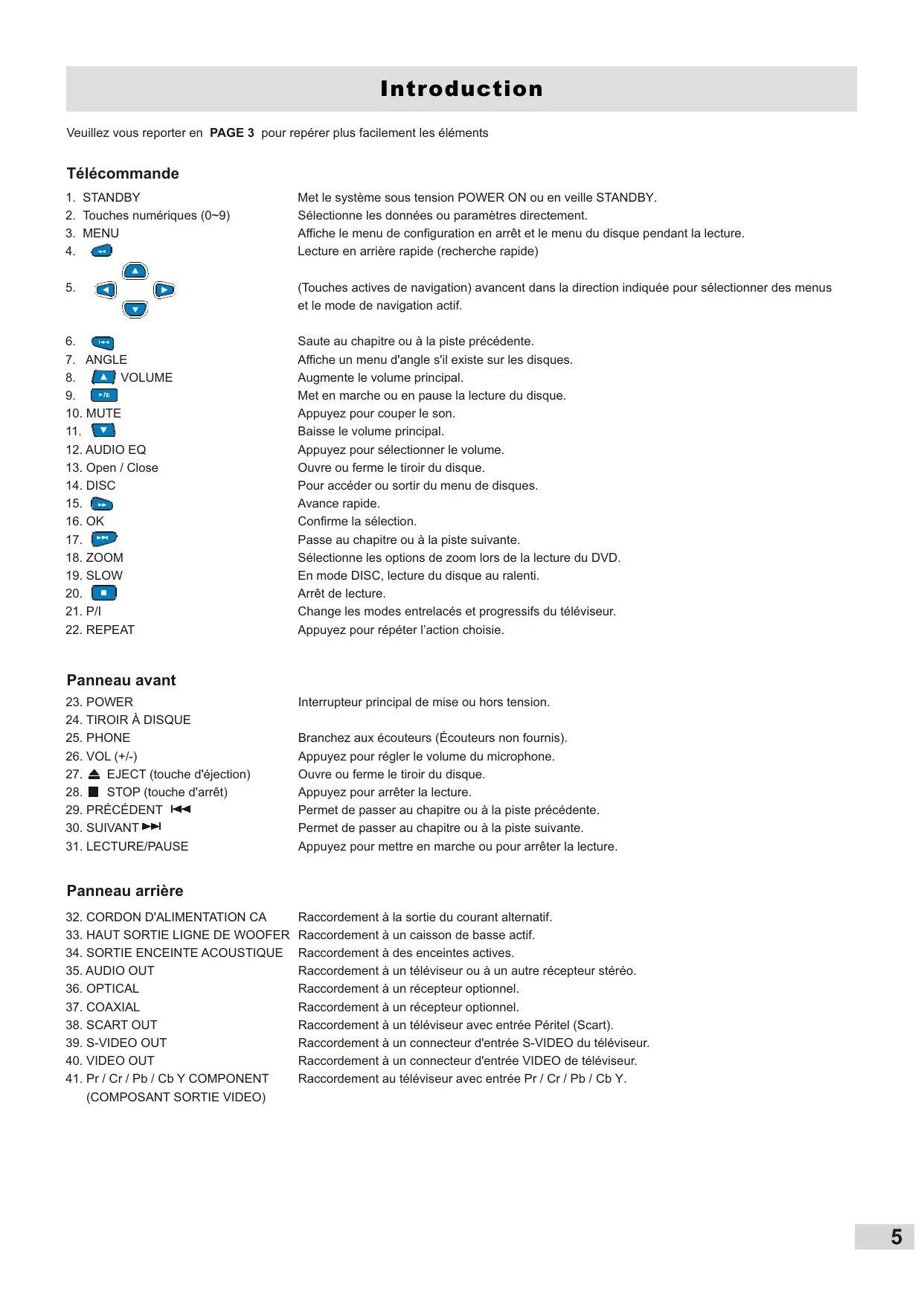 Veuillez vous reporter en PAGE 3 pour repérer plus facilement les éléments