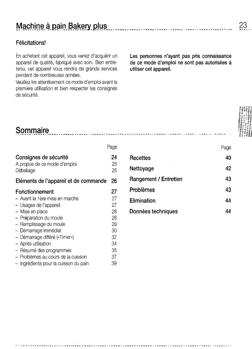 | Consignes de sécurité | 24 | Recettes | 40 |