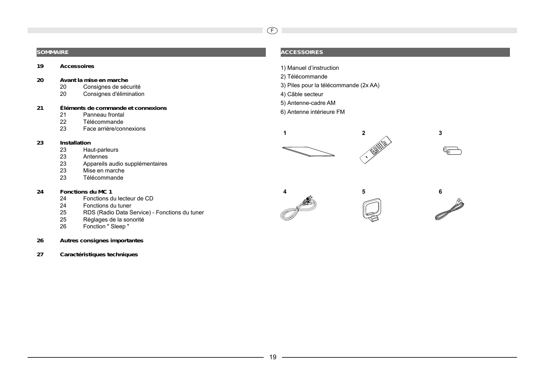 Fonctions du MC 1 Fonctions du lecteur de CD Fonctions du tuner RDS (Radio Data Service) - Fonctions du tuner Réglages de la sonorité Fonction " Sleep "