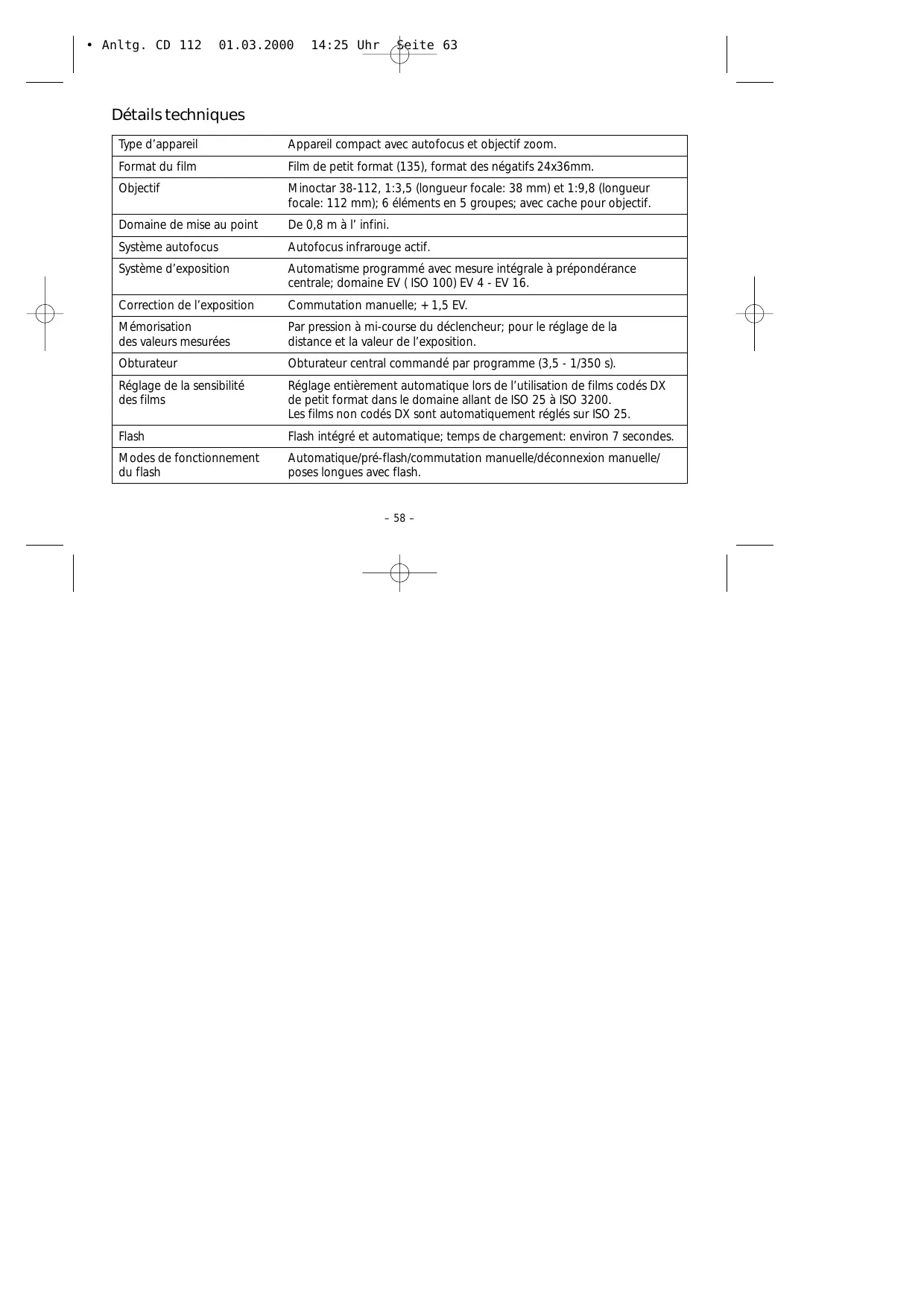 CD 112 - Appareil photo MINOX - Notice d'utilisation et mode d'emploi gratuit