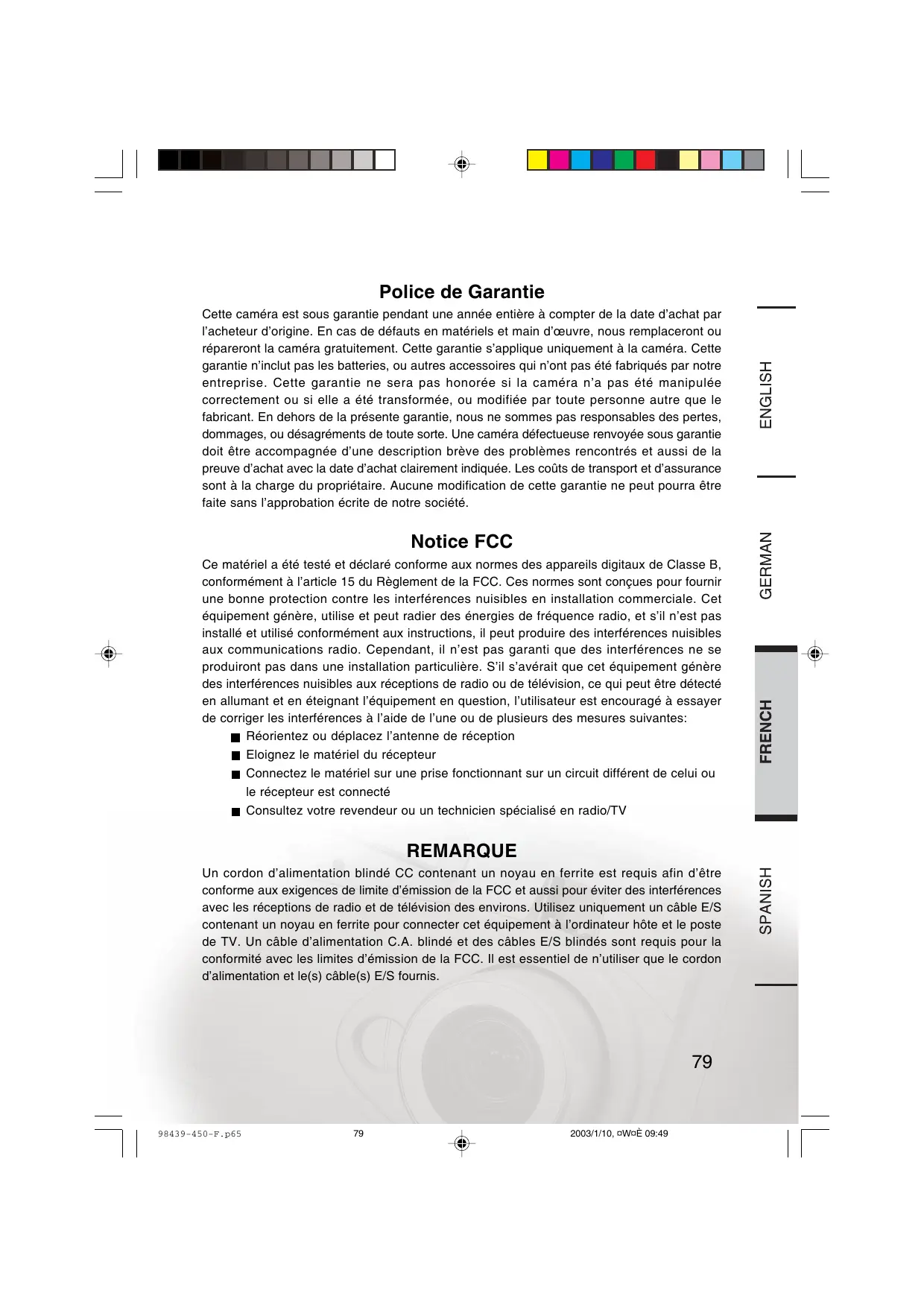 Retirez les piles si laamera ne doit pas etre utilisee pendant une pereode prolongee.