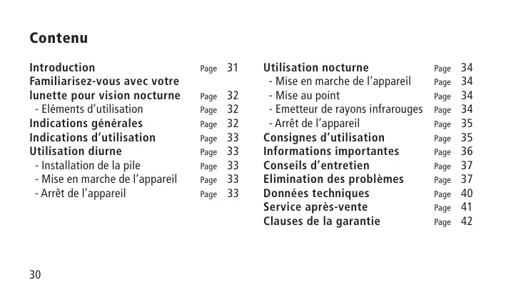 Cet apparéil opto-électronique haut de gamme est équipé d'un amplificateur de lumière résiduelle de la génération 1+ . Il peut s'utiliser en situation d'observation ou d'orientation ( combiné avec un émetteur de rayons infrarouges)quel que soit le degré d'obscurite (préuscule, clair de lune, nuit etoilée ou nuit noire) dans une plage de températures de -30^ bis +50^ Grace à ses dimensions compactes, l' apparéil est simple à manipuler et utilisable à tout moment. En l'utilisant et en l'entretenant correctement, il fonctionnera de façon irréprochable pendant de nombreuses années.